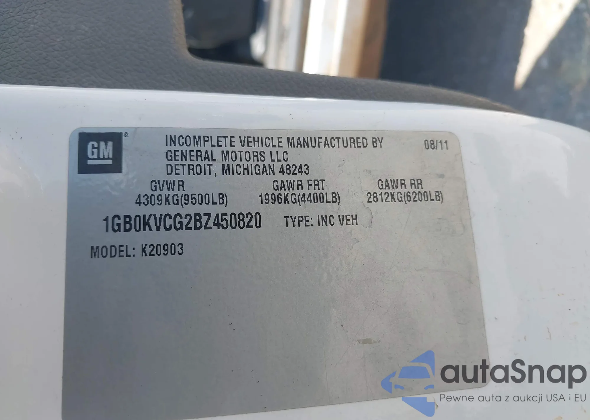 • VIN 1GB0KVCG2BZ450820