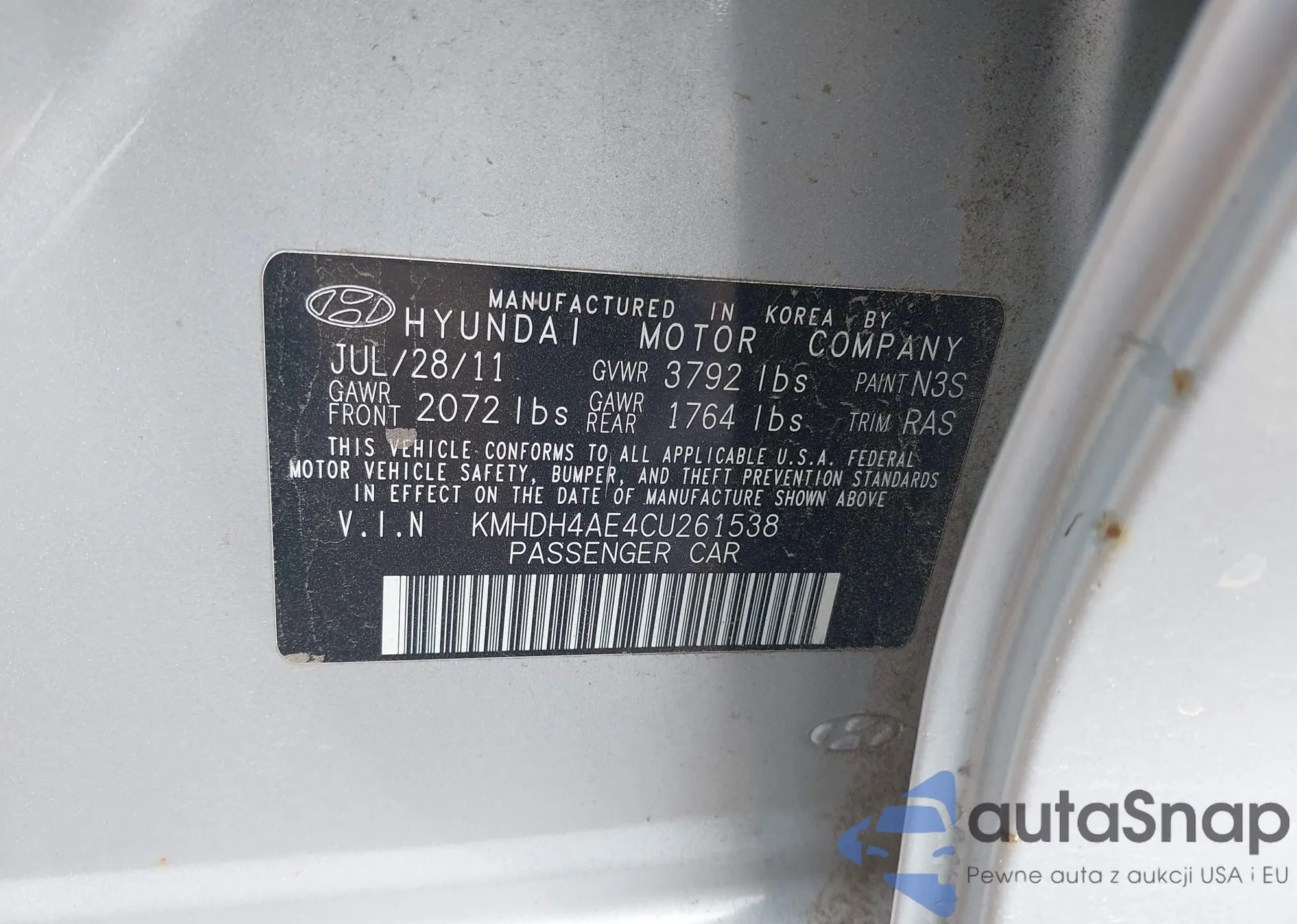 LOT: 42777267 VIN: KMHDH4AE4CU261538