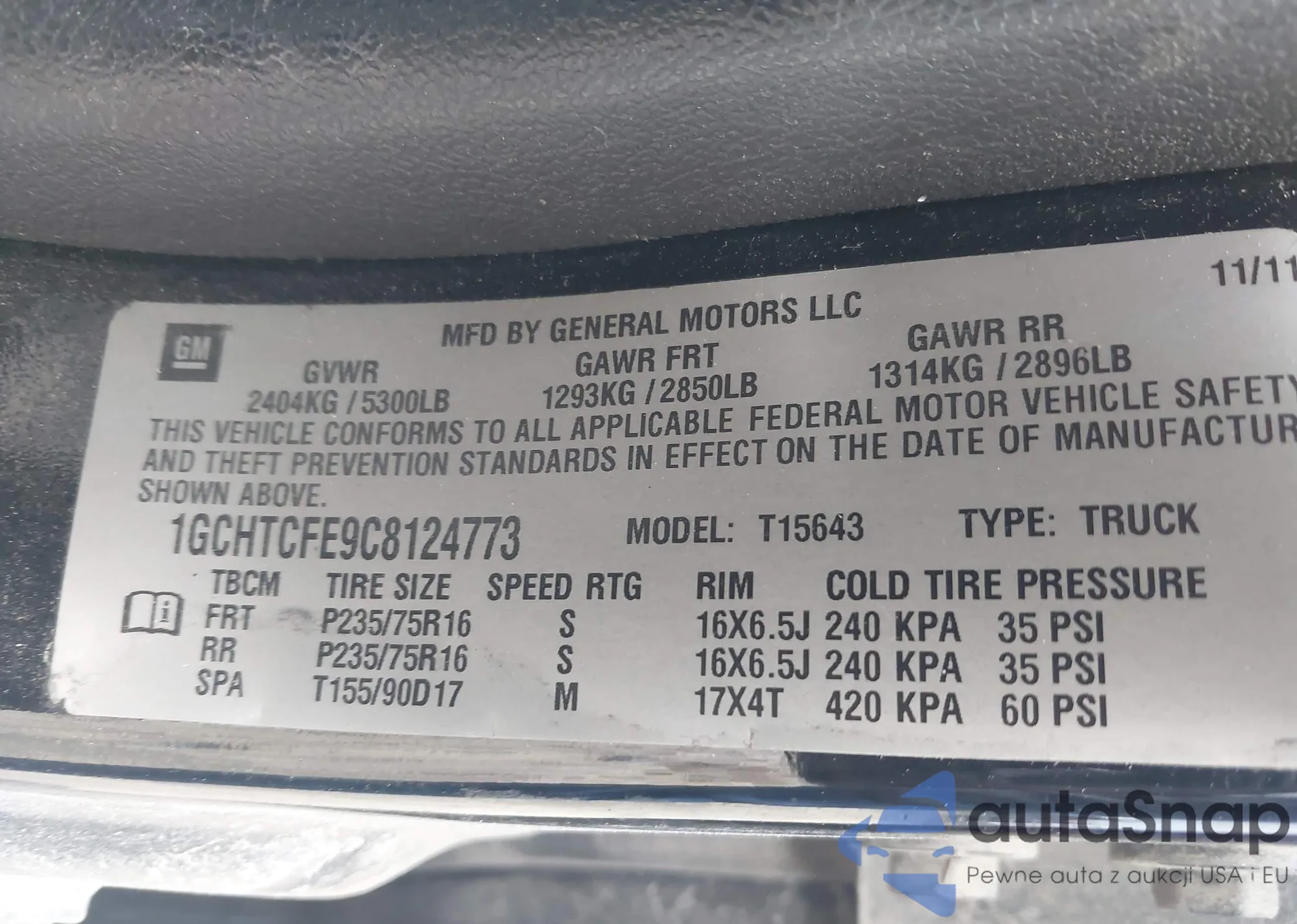 LOT: 43092473 VIN: 1GCHK53K89F182614