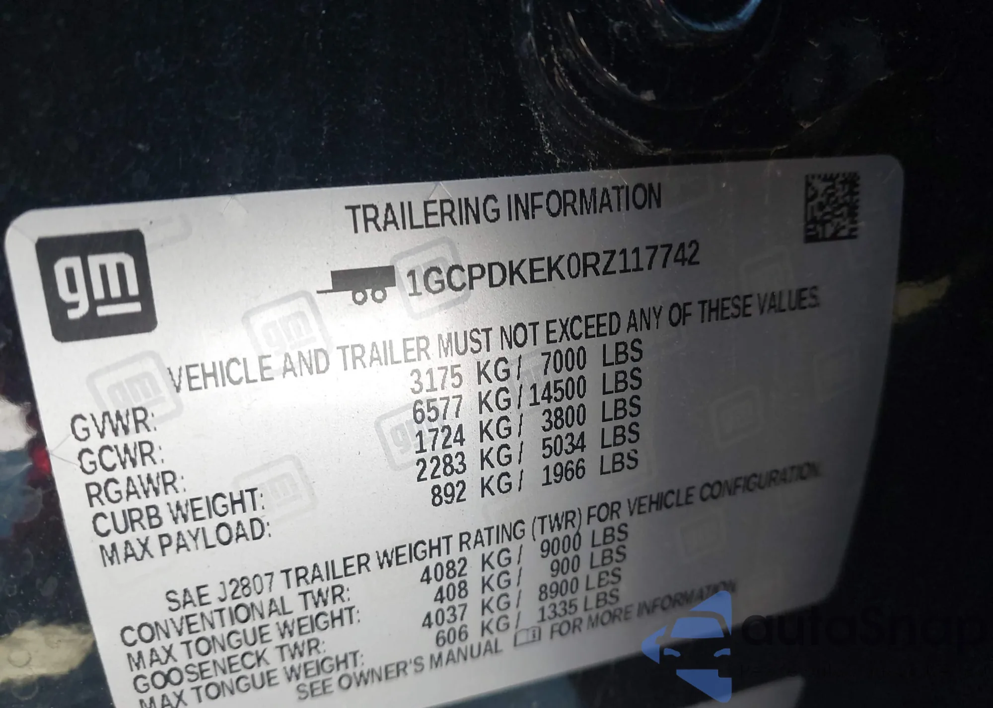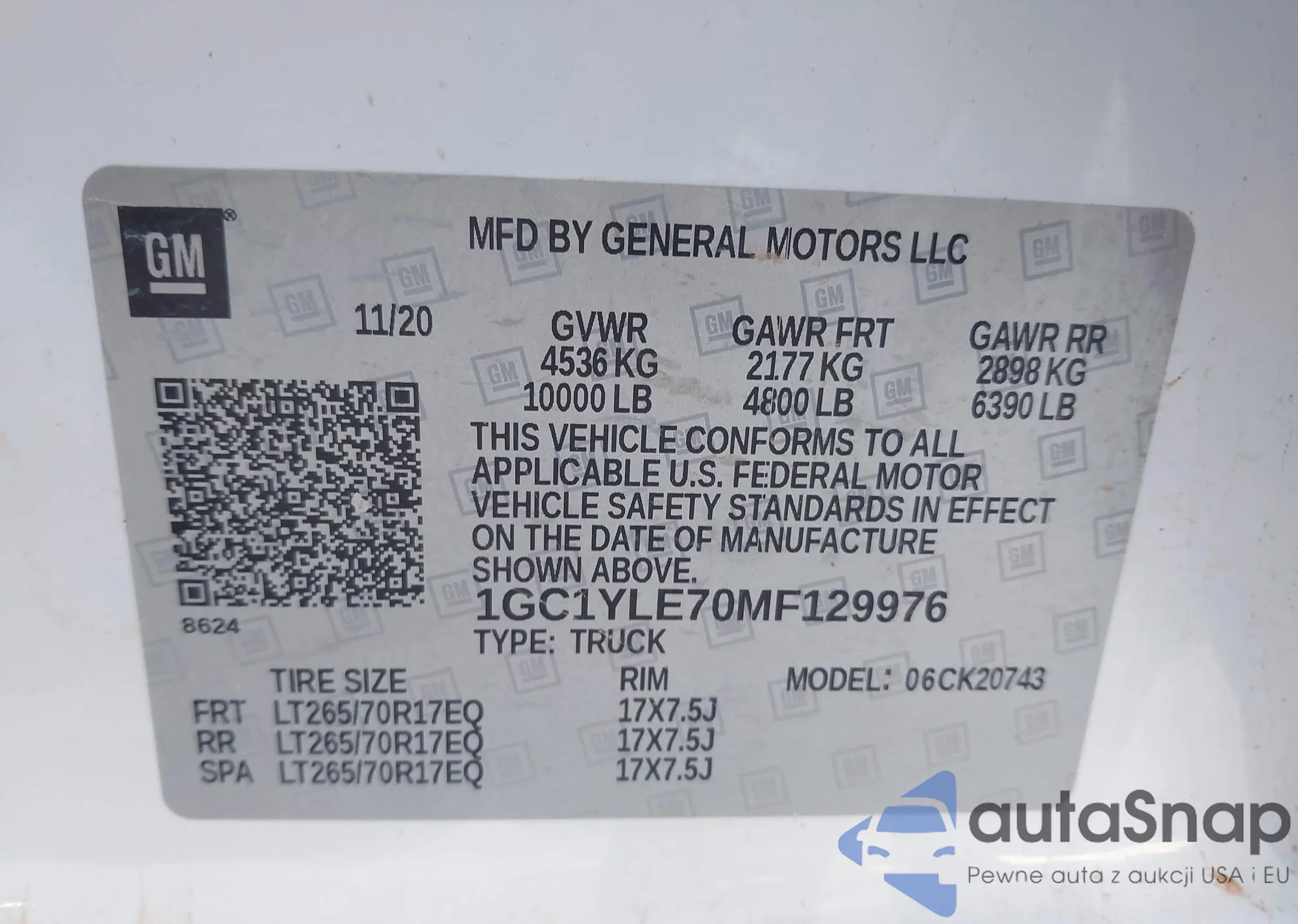 LOT: 43100455 VIN: 1GCPDKEK0RZ117742