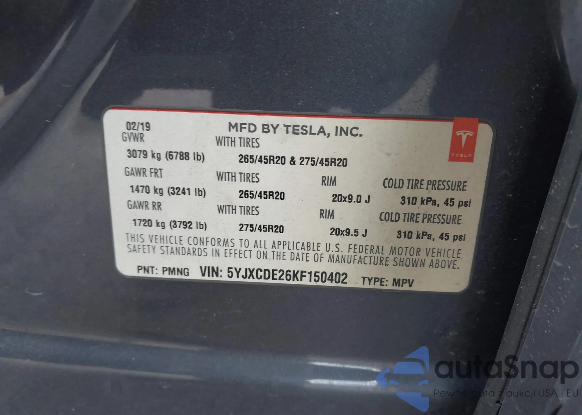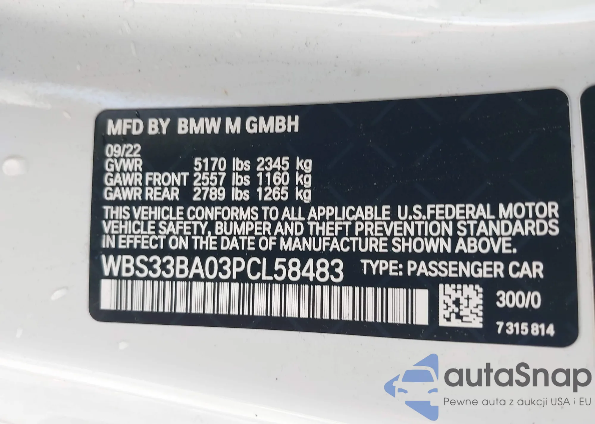 LOT: 43119002 VIN: WA1DECF31P1105716
