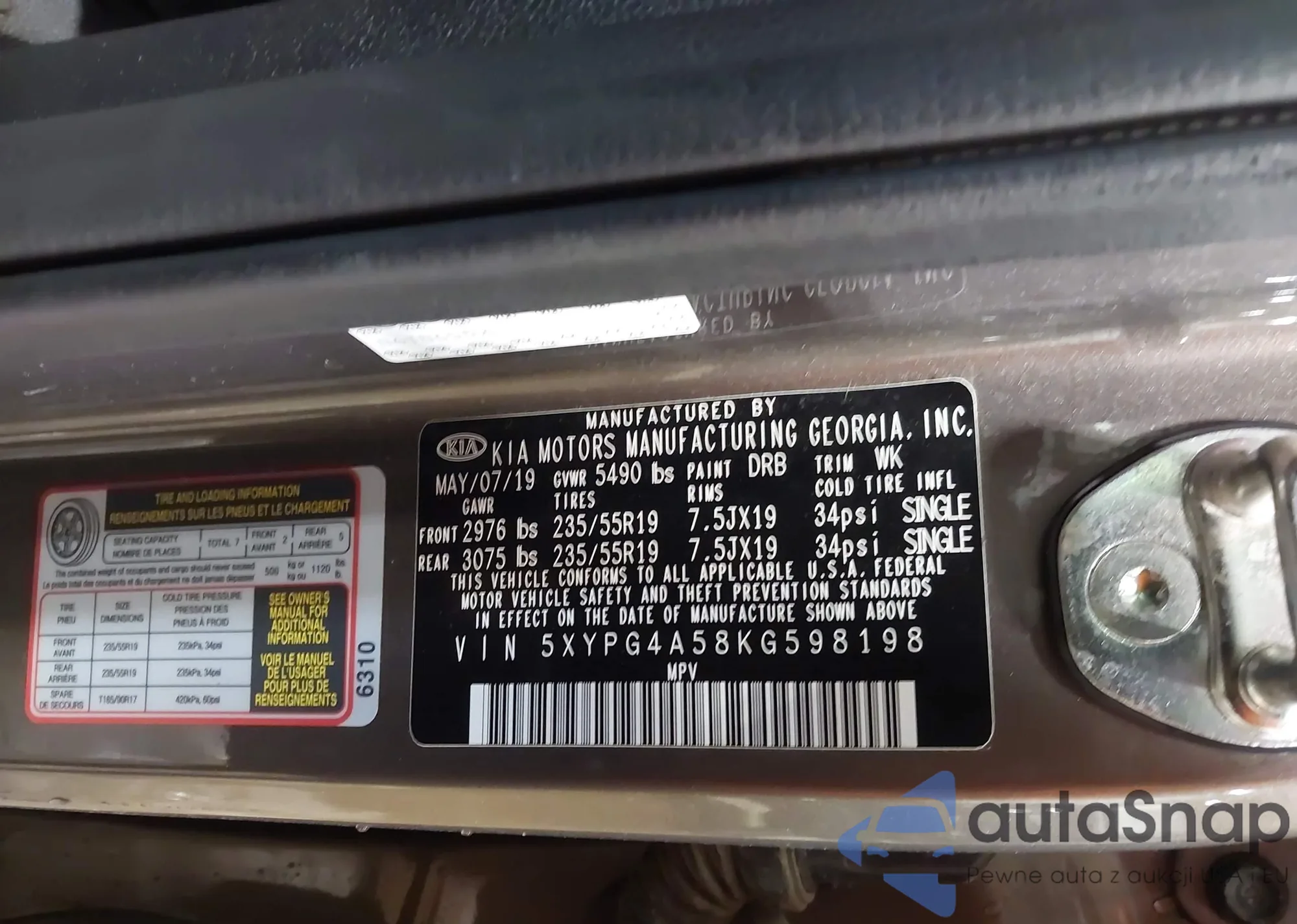 • VIN 5XYPG4A58KG598198