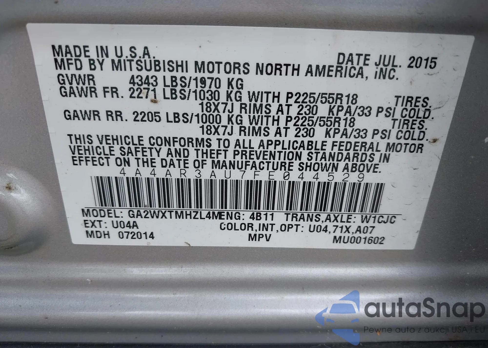 • VIN 3VW3A7AJ9FM417615