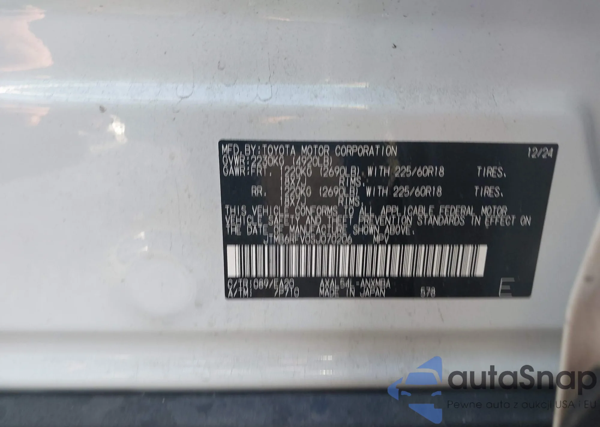 LOT: 43437960 VIN: JTMB6RFV0SJ070206