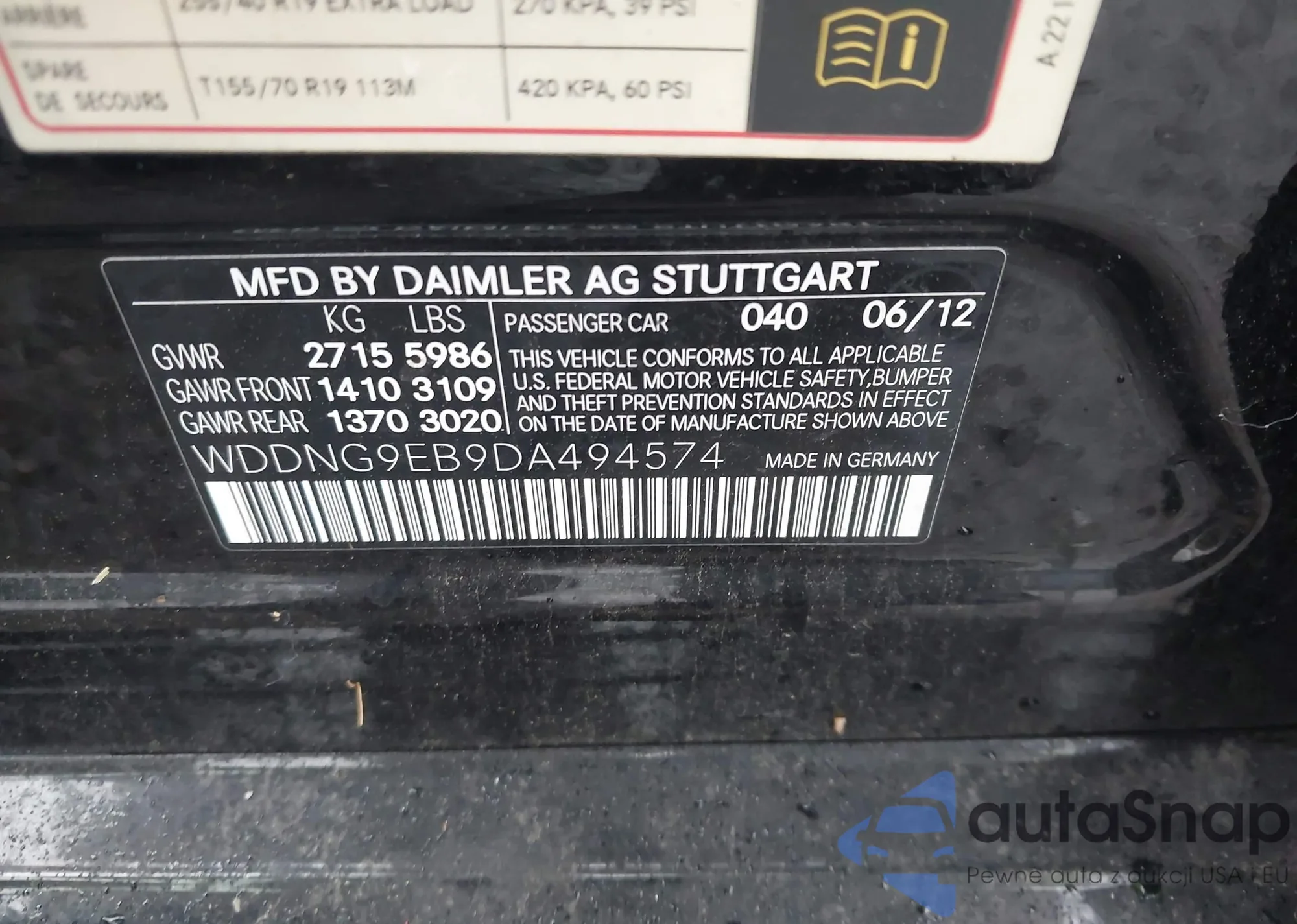 LOT: 43272572 VIN: WDDNG9EB9DA494574