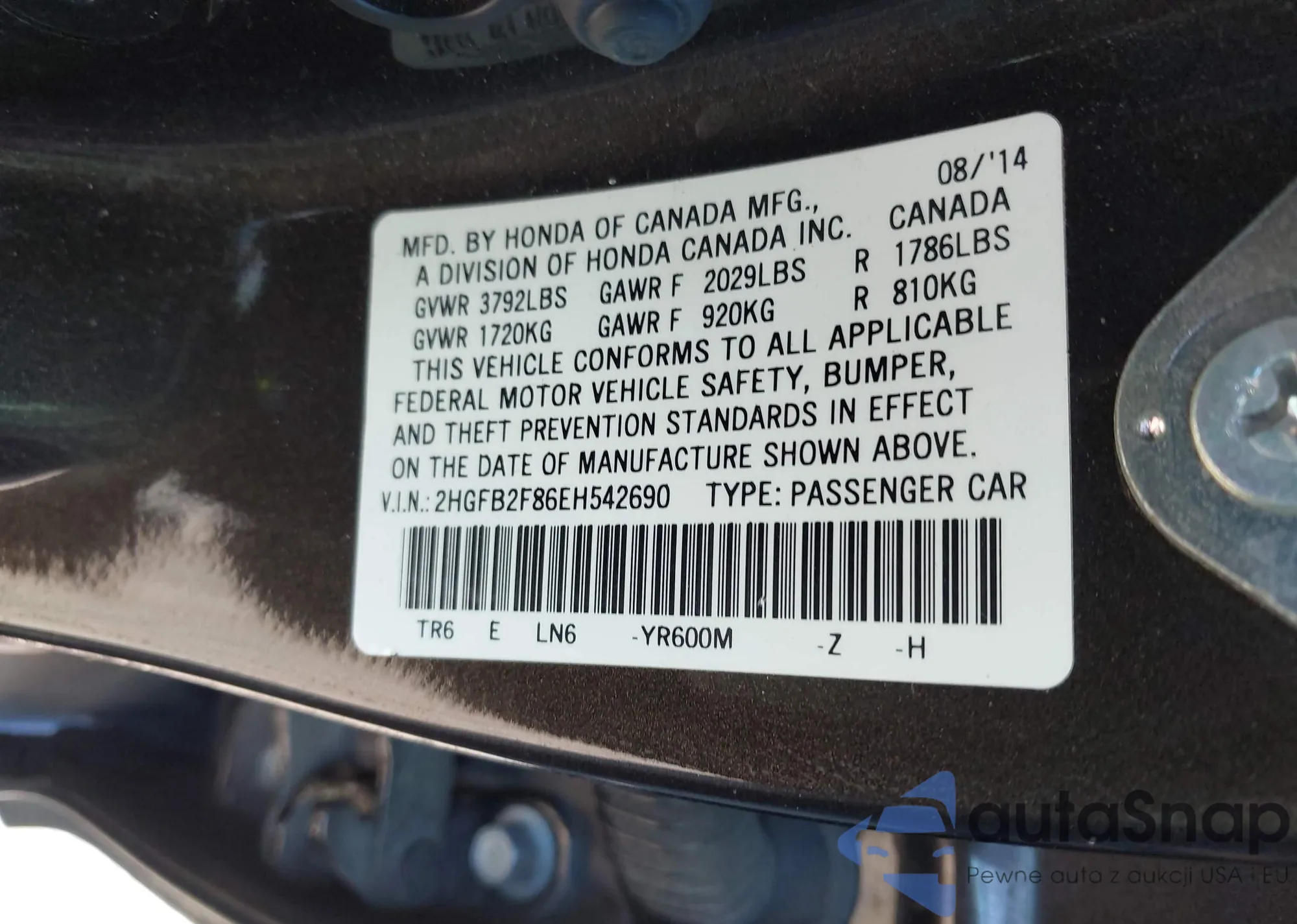 • VIN 2HGFB2F86EH542690