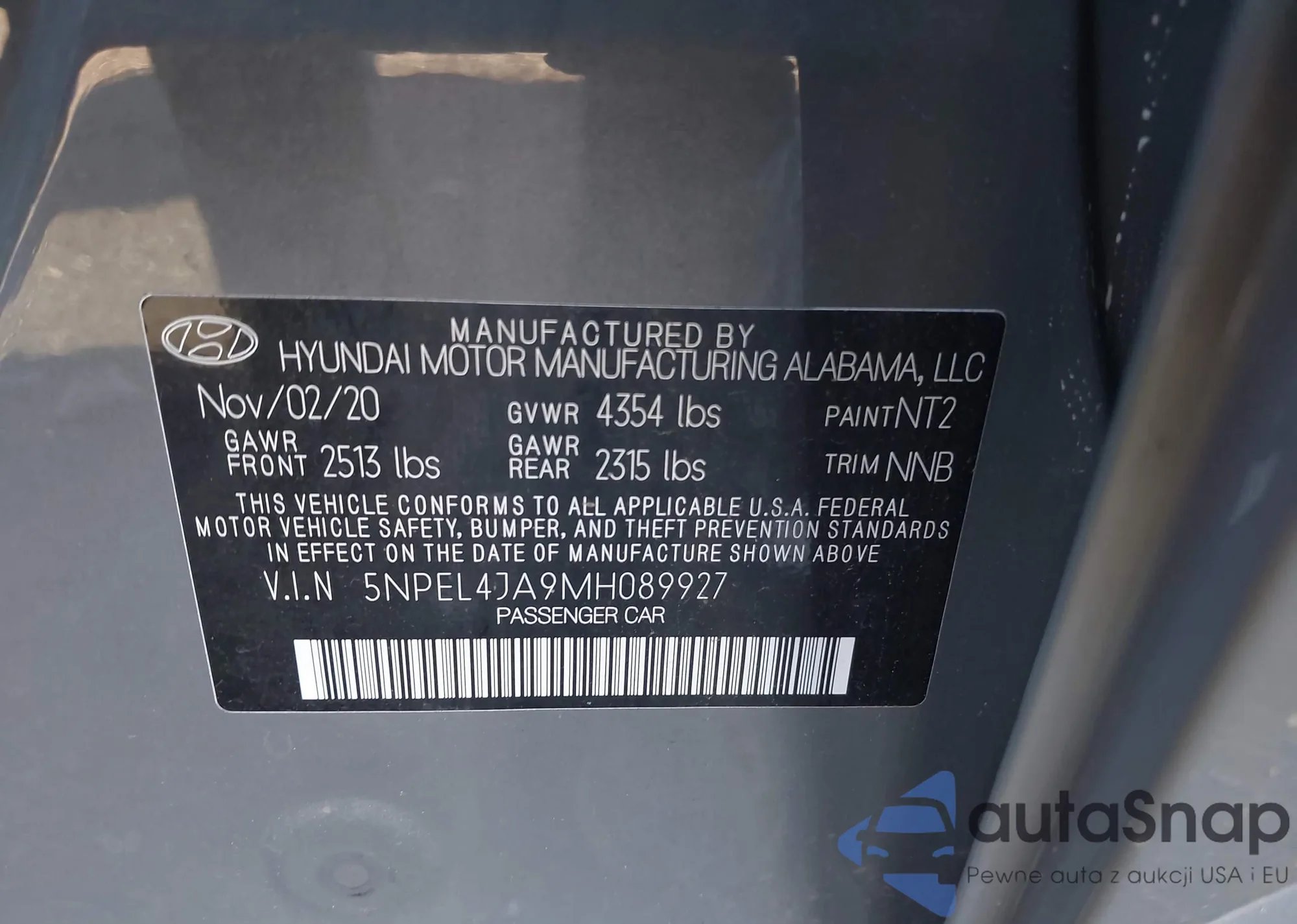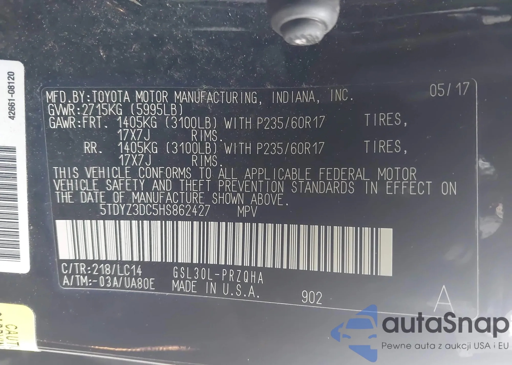 • VIN 5TDYZ3DC5HS862427