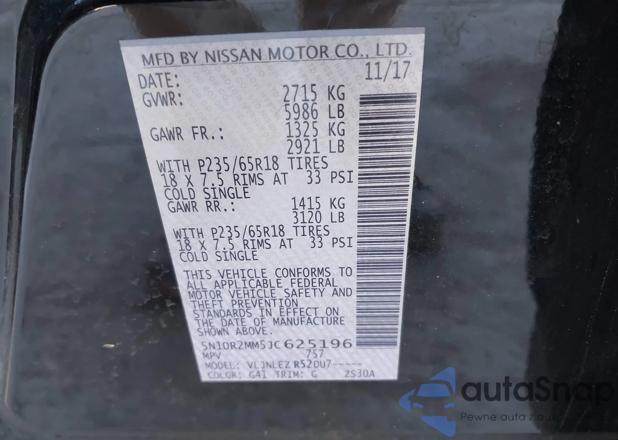 • VIN 5N1DR2MM5JC625196