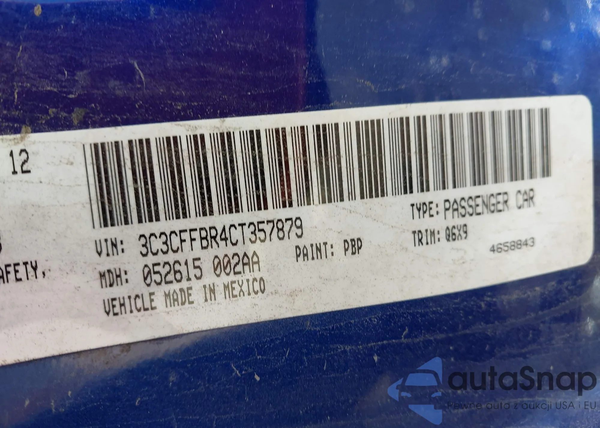LOT: 43150695 VIN: 3C3CFFAR1DT563048