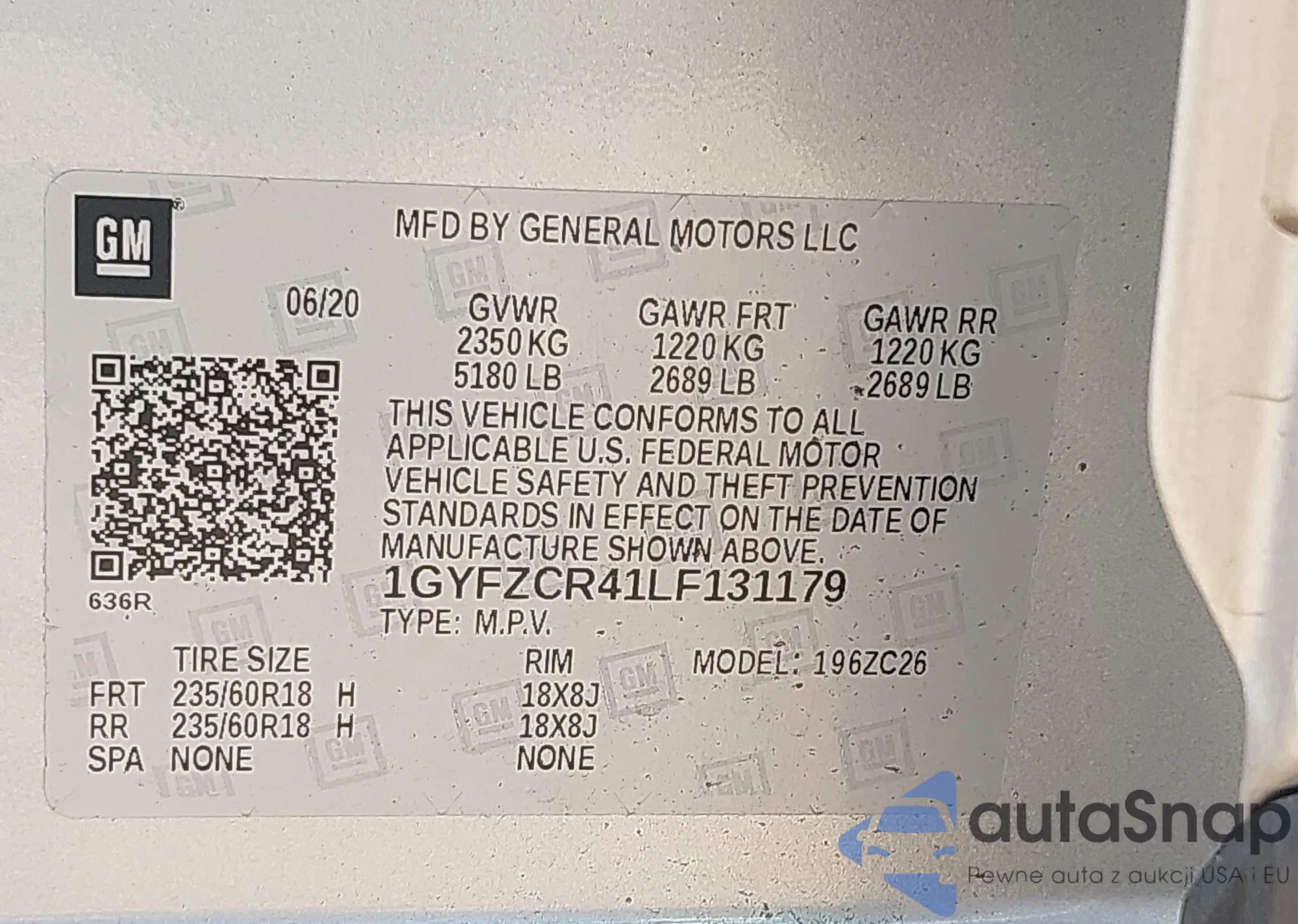 LOT: 43220784 VIN: JN1BJ1CV0LW544697