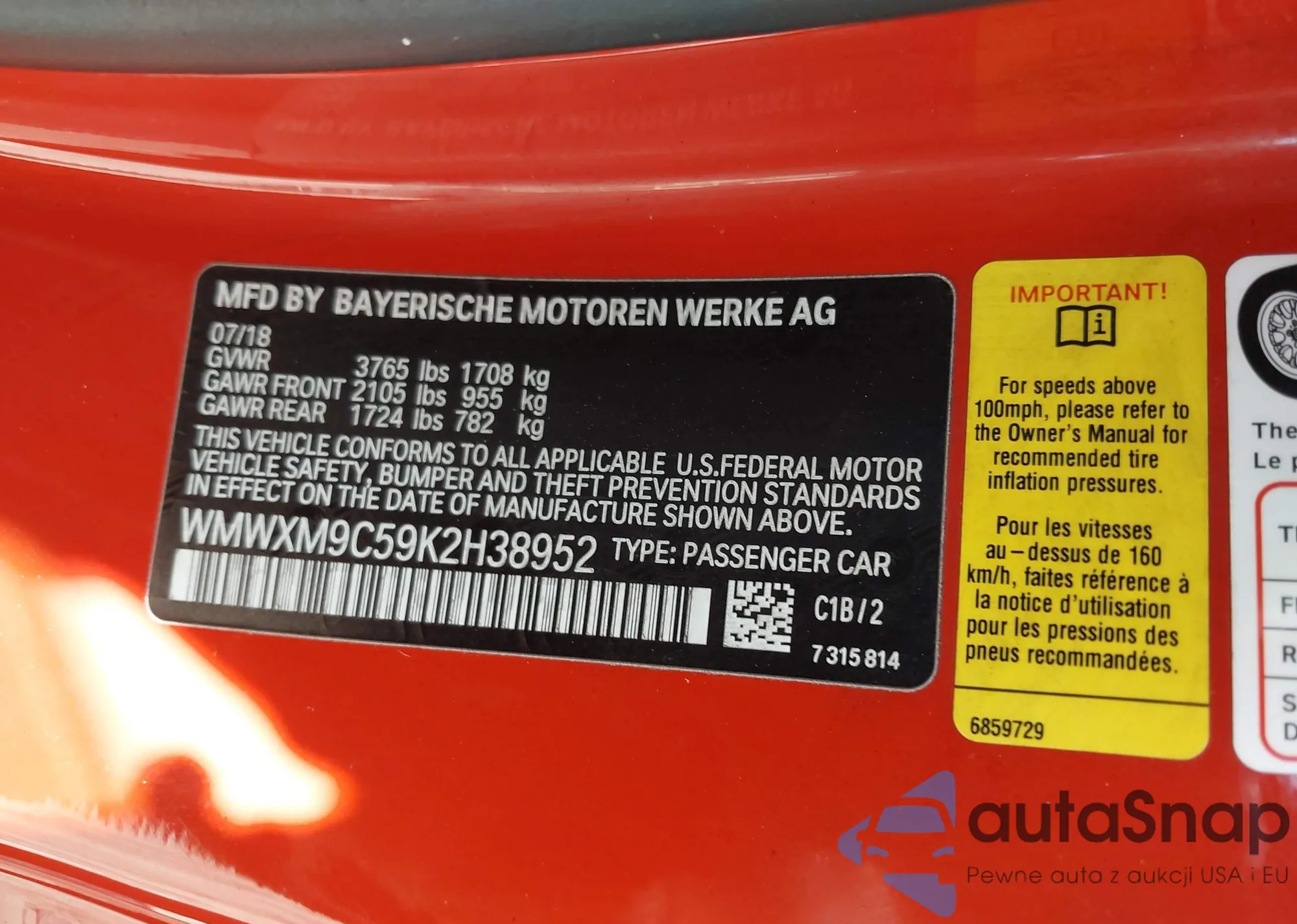• VIN WMWXM9C59K2H38952