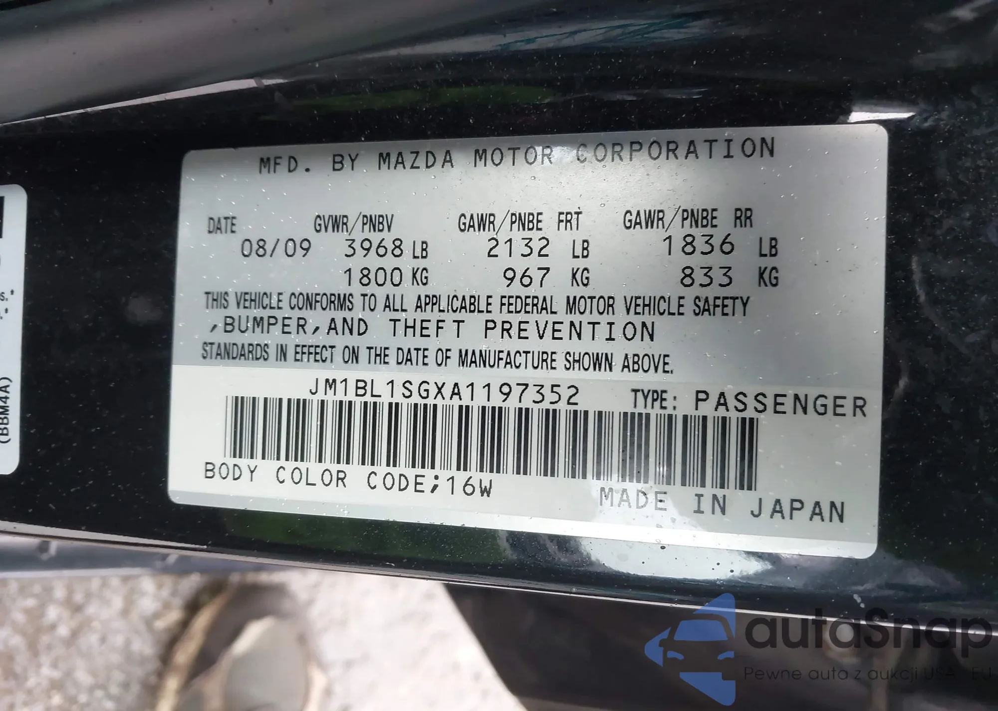 LOT: 43443187 VIN: JM1BL1SGXA1197352
