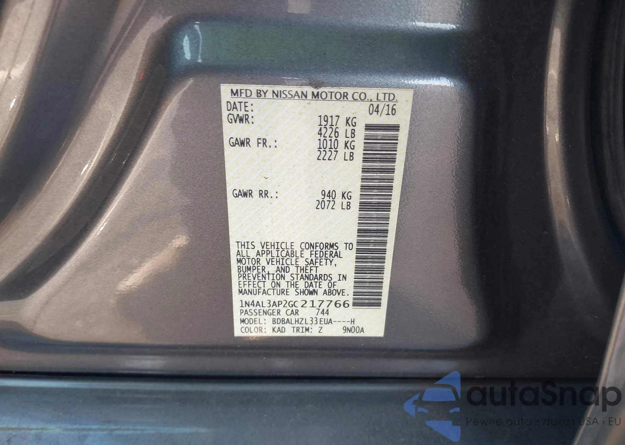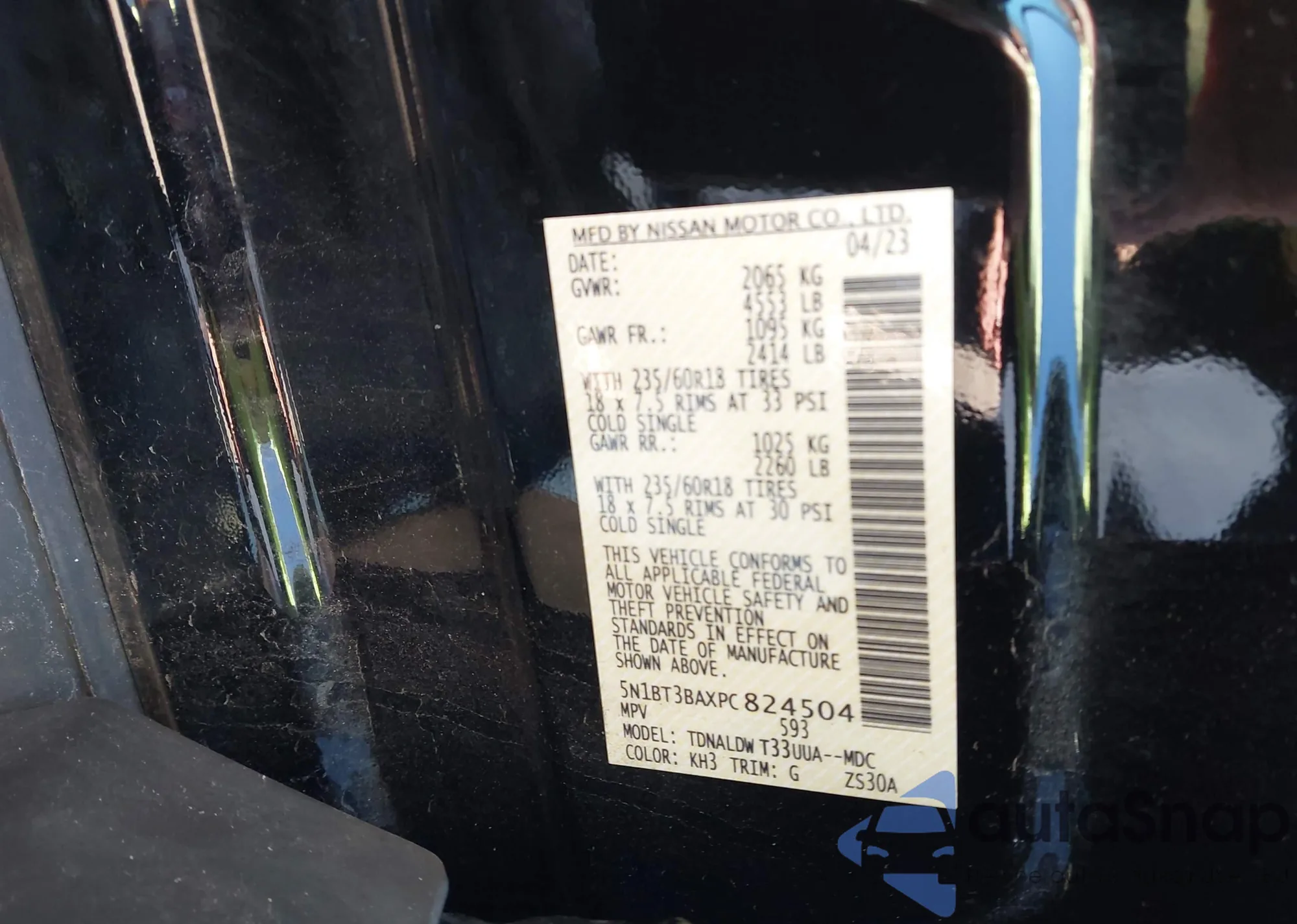 LOT: 43606494 VIN: 5N1BT3BAXPC824504