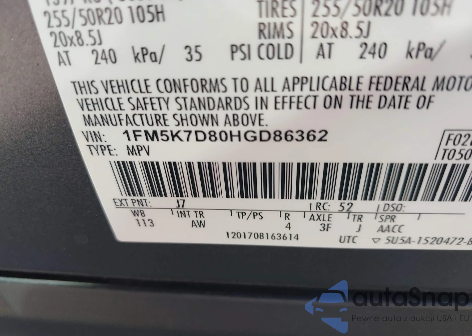 • VIN 1FM5K8F8XGGC16267