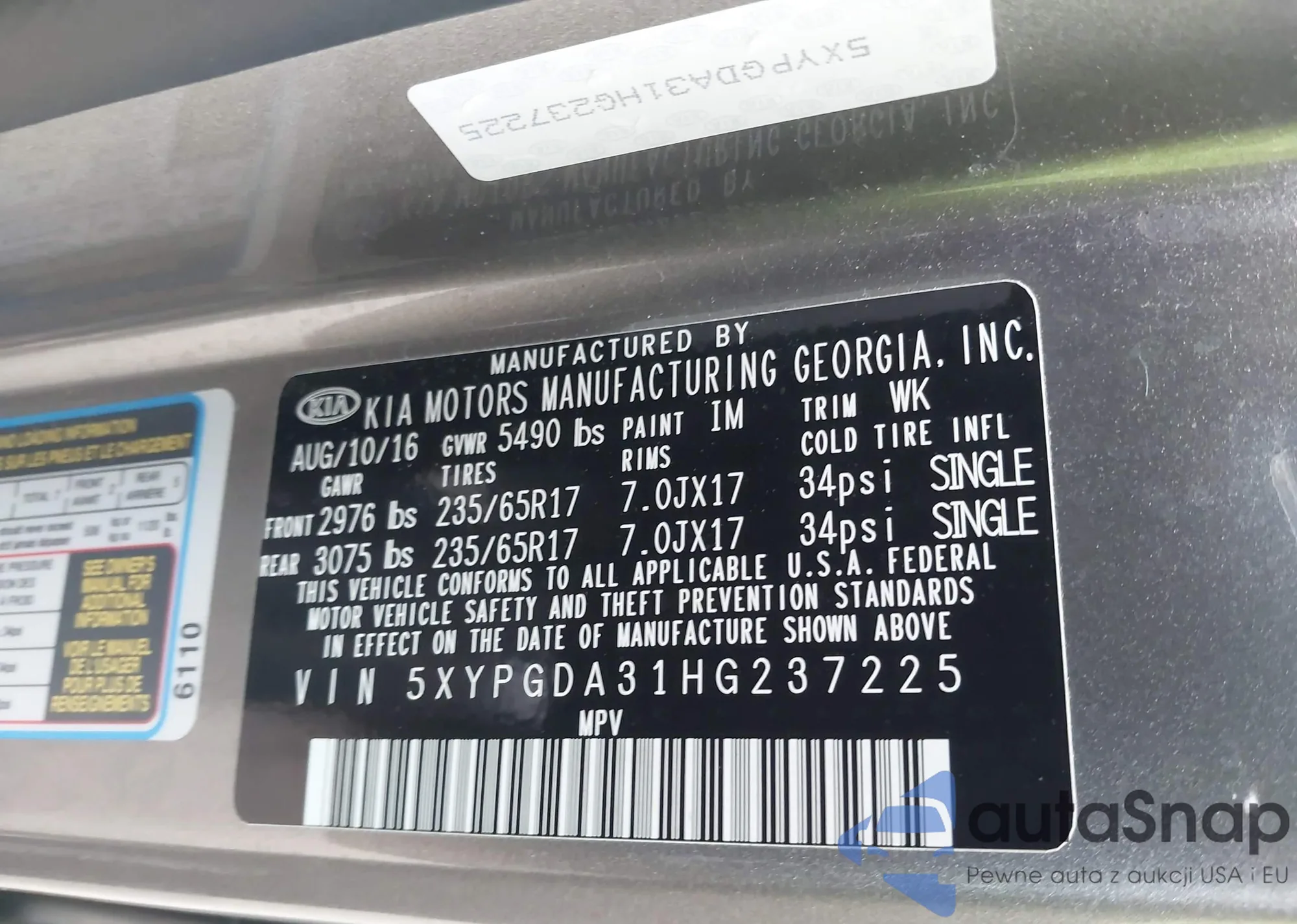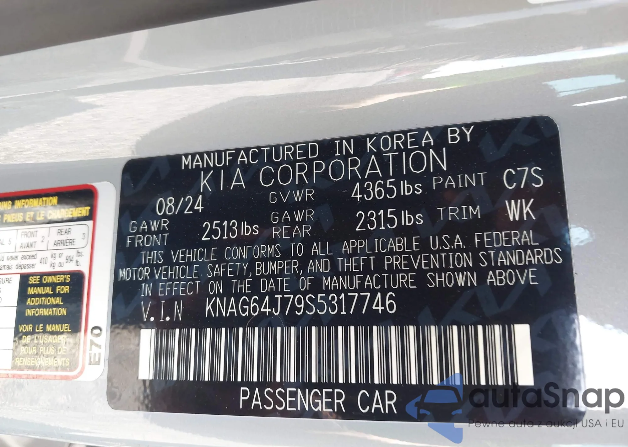LOT: 43502846 VIN: KNADM5A34C6079585