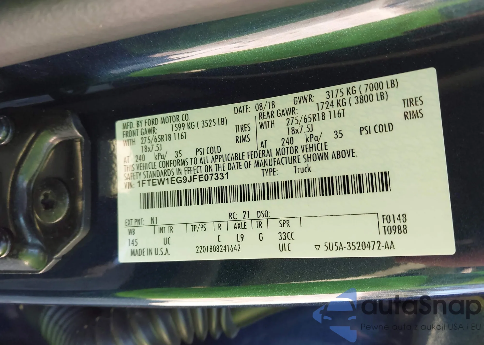 LOT: 43357883 VIN: 1FTEW1EG9JFE07331