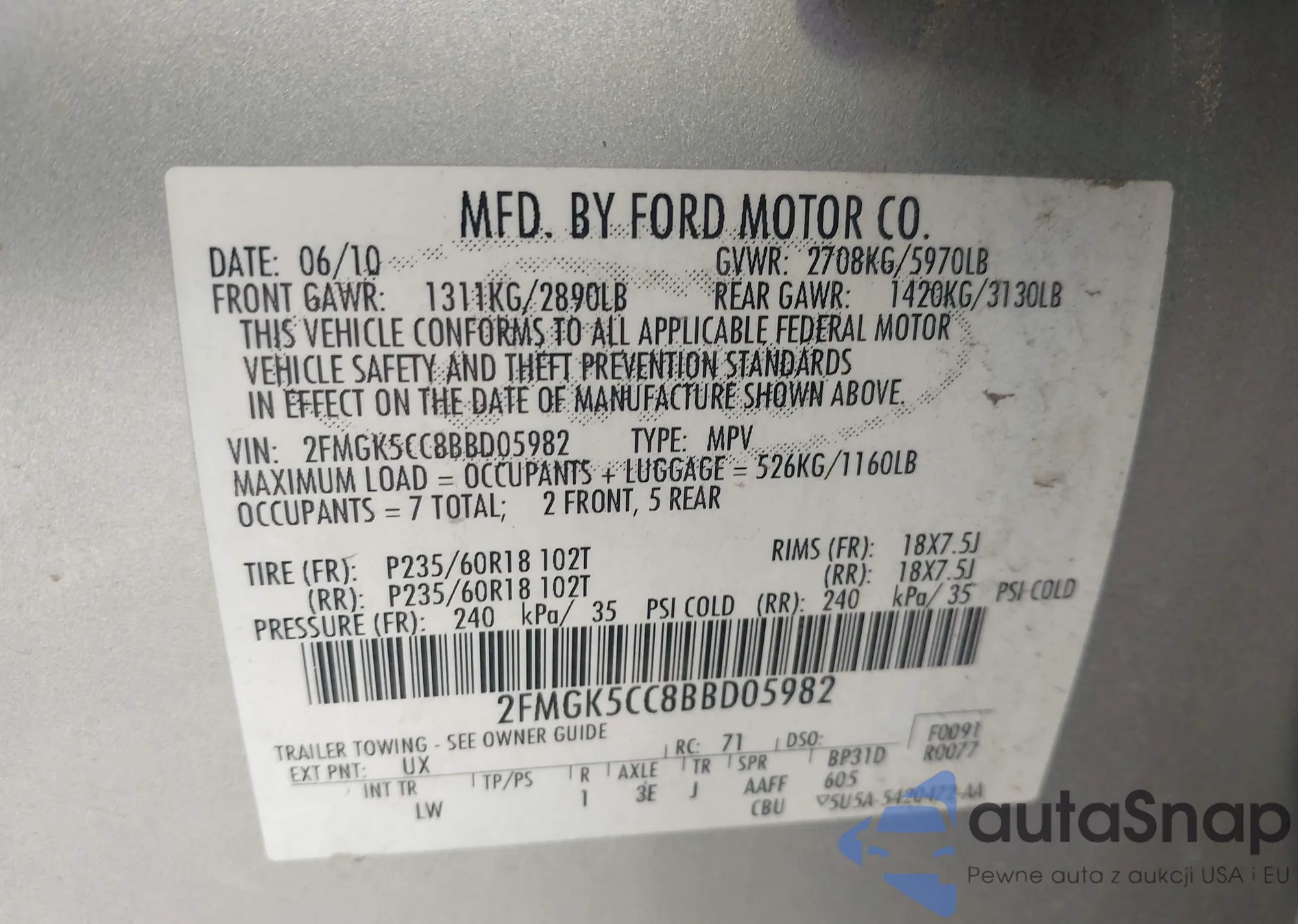 • VIN 2FMGK5CC8BBD05982