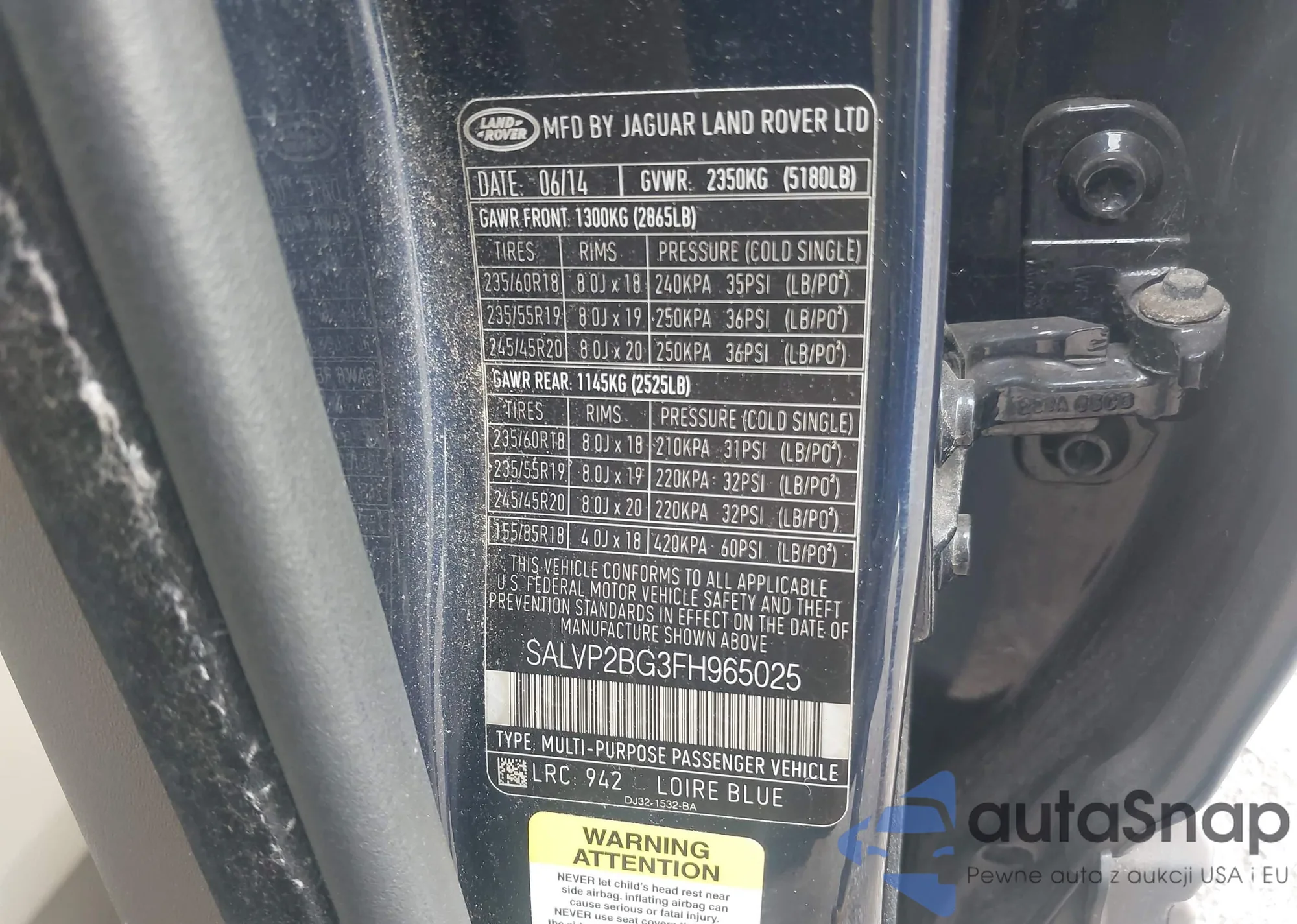 LOT: 42999337 VIN: SALVP2BG3FH965025