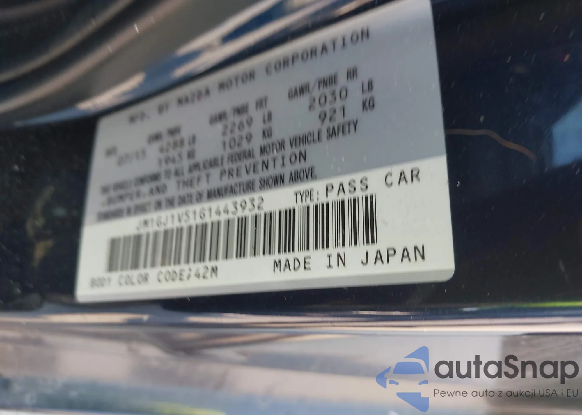 LOT: 43012403 VIN: JM1GJ1V51G1443932