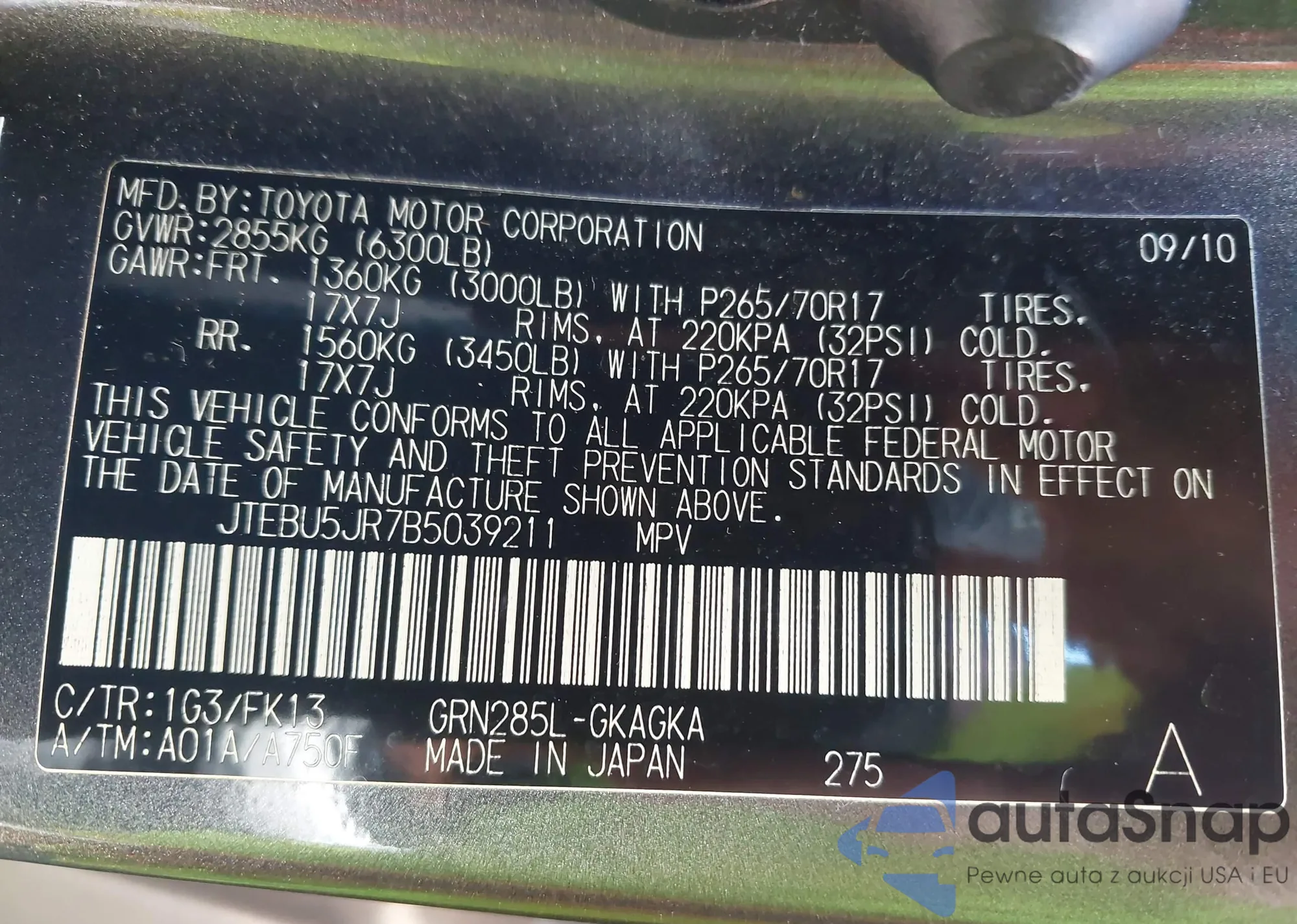 LOT: 43073680 VIN: JTJDARBZ7M2182866