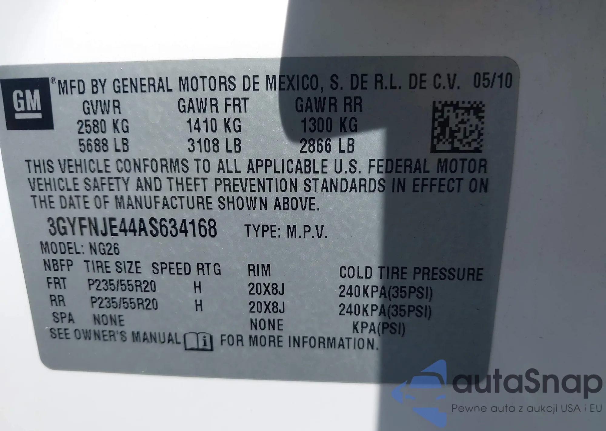 • VIN 3GYFNJE44AS634168
