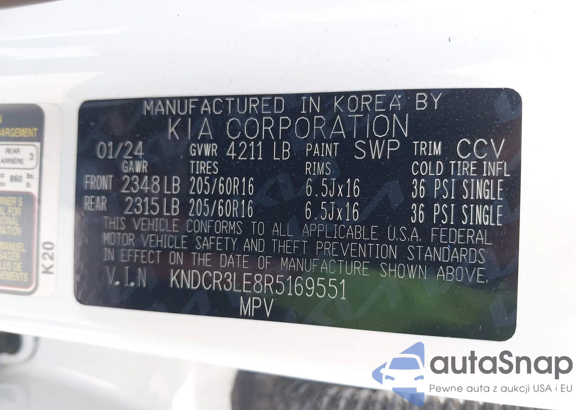 • VIN KNDCR3LE8R5169551