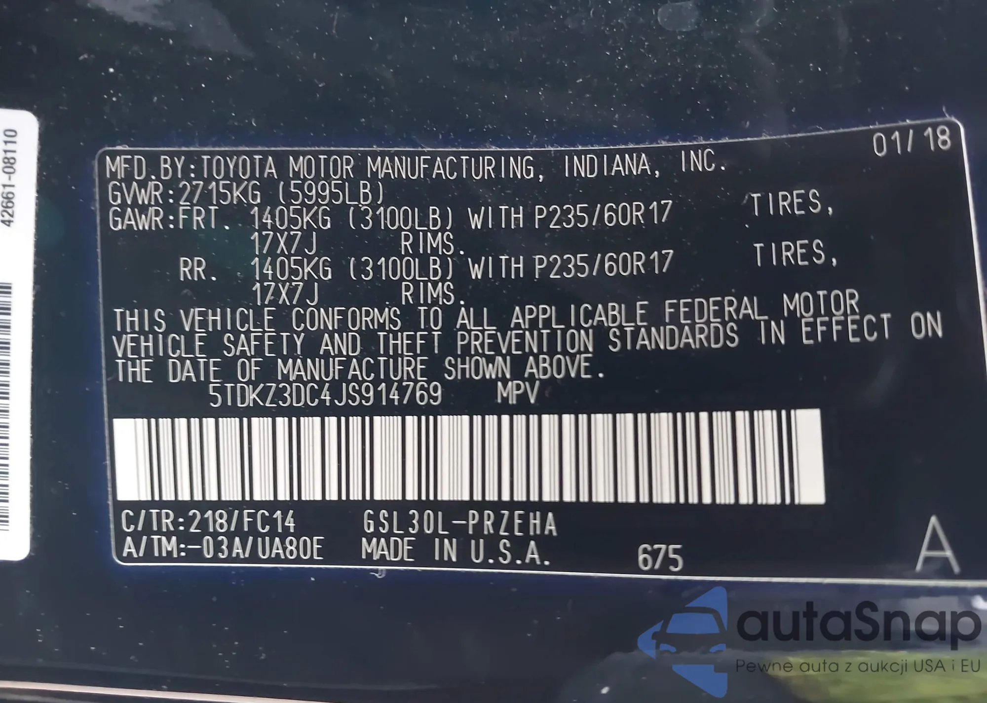 • VIN 5TDKZ3DC4JS914769