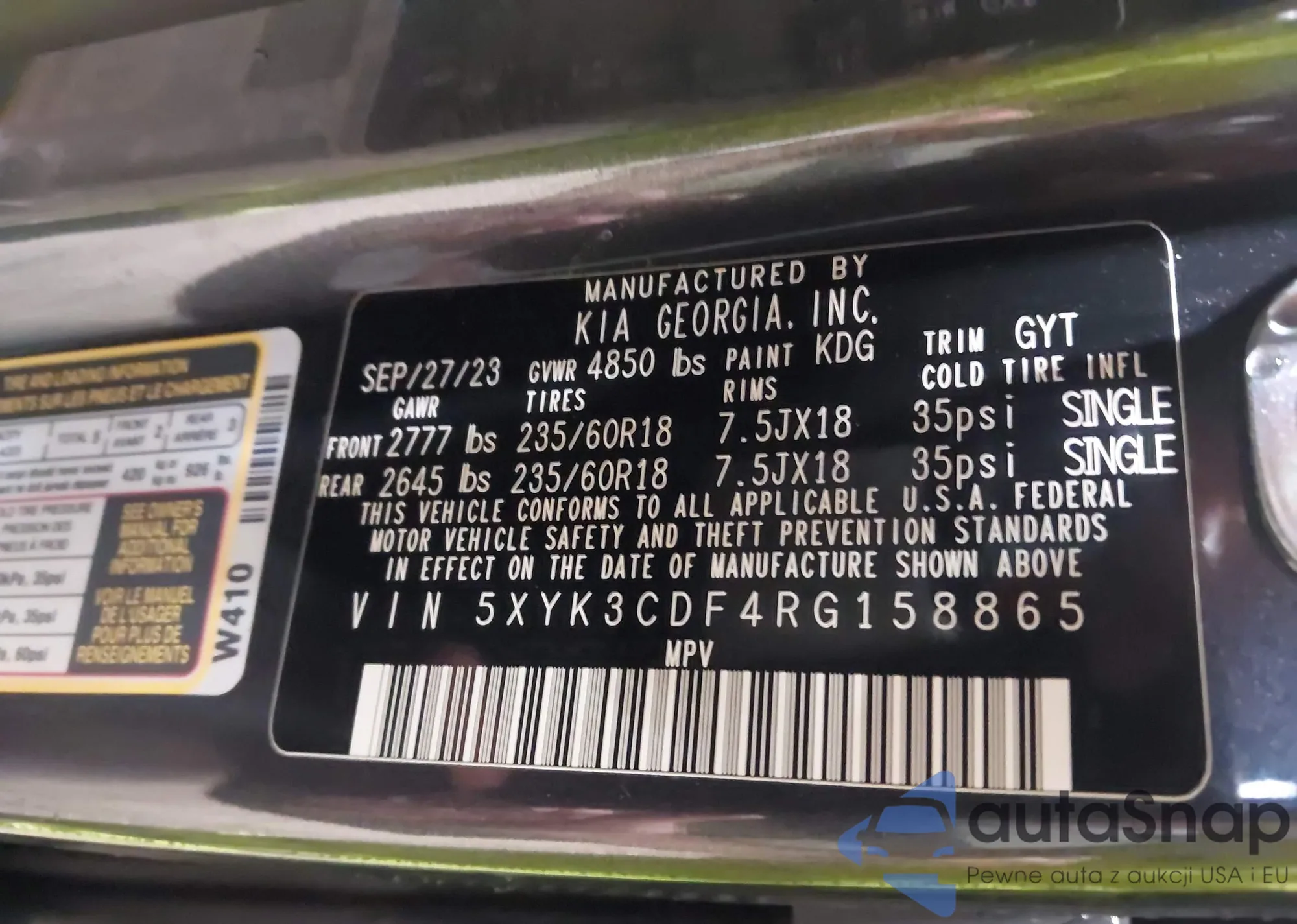 LOT: 43073523 VIN: KNDCR3LE8R5169551