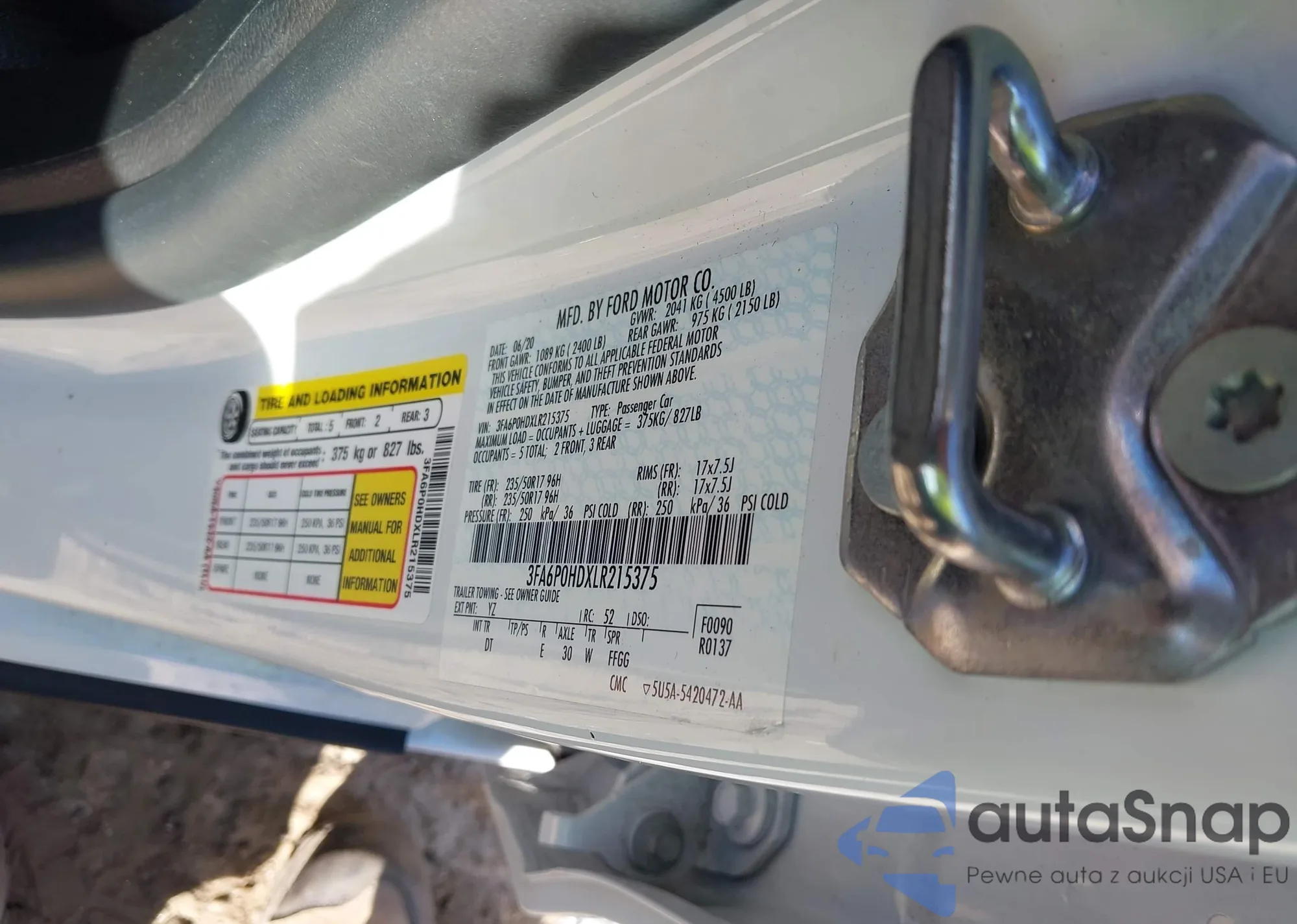 LOT: 43050571 VIN: 3FA6P0H7XHR178233