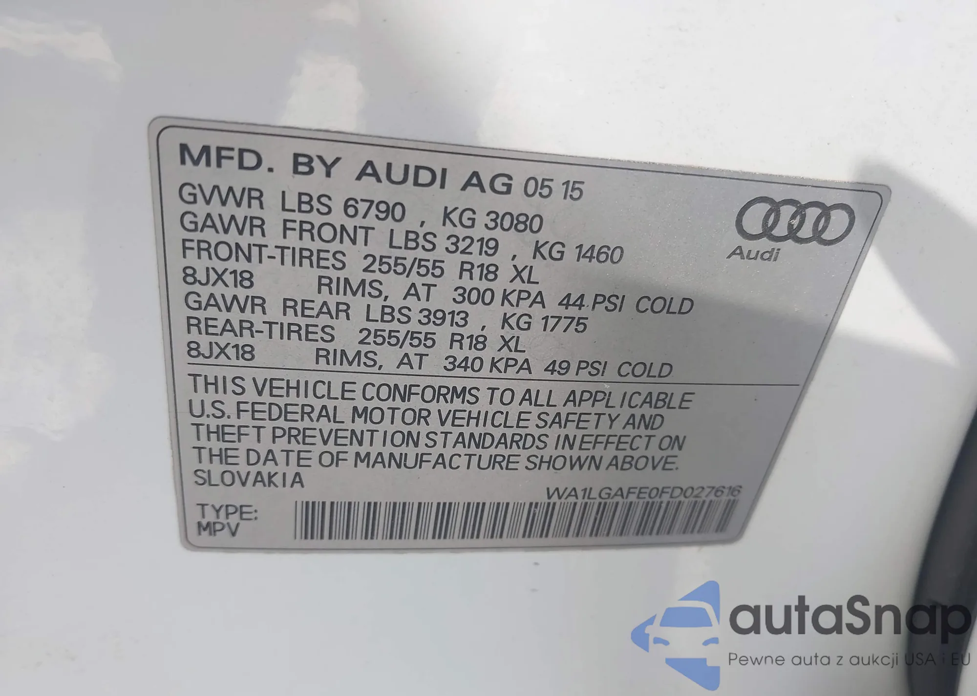 LOT: 43267395 VIN: WA1LGAFE0FD027616