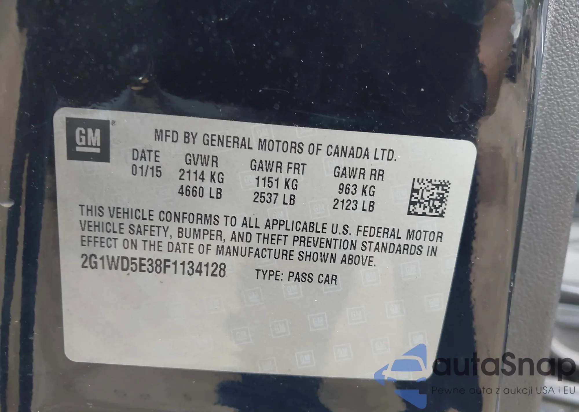 • VIN 2G1WD5E38F1134128