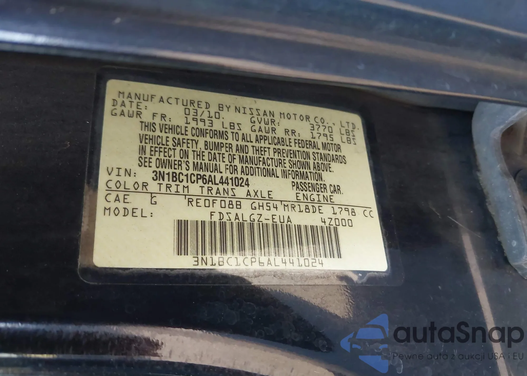 • VIN 1N4AL2AP9CC173530