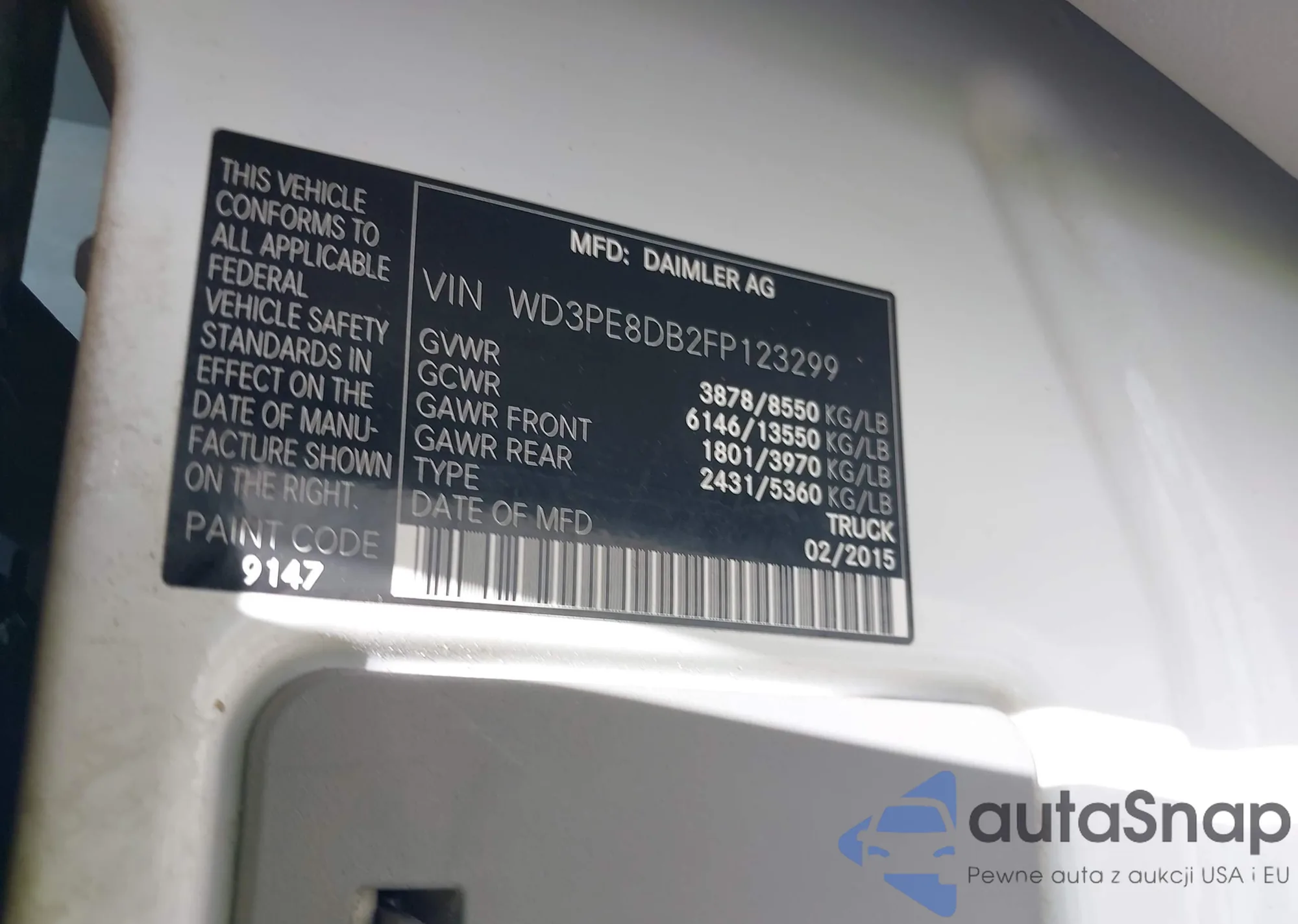 LOT: 42914340 VIN: WD3PE8DB2FP123299