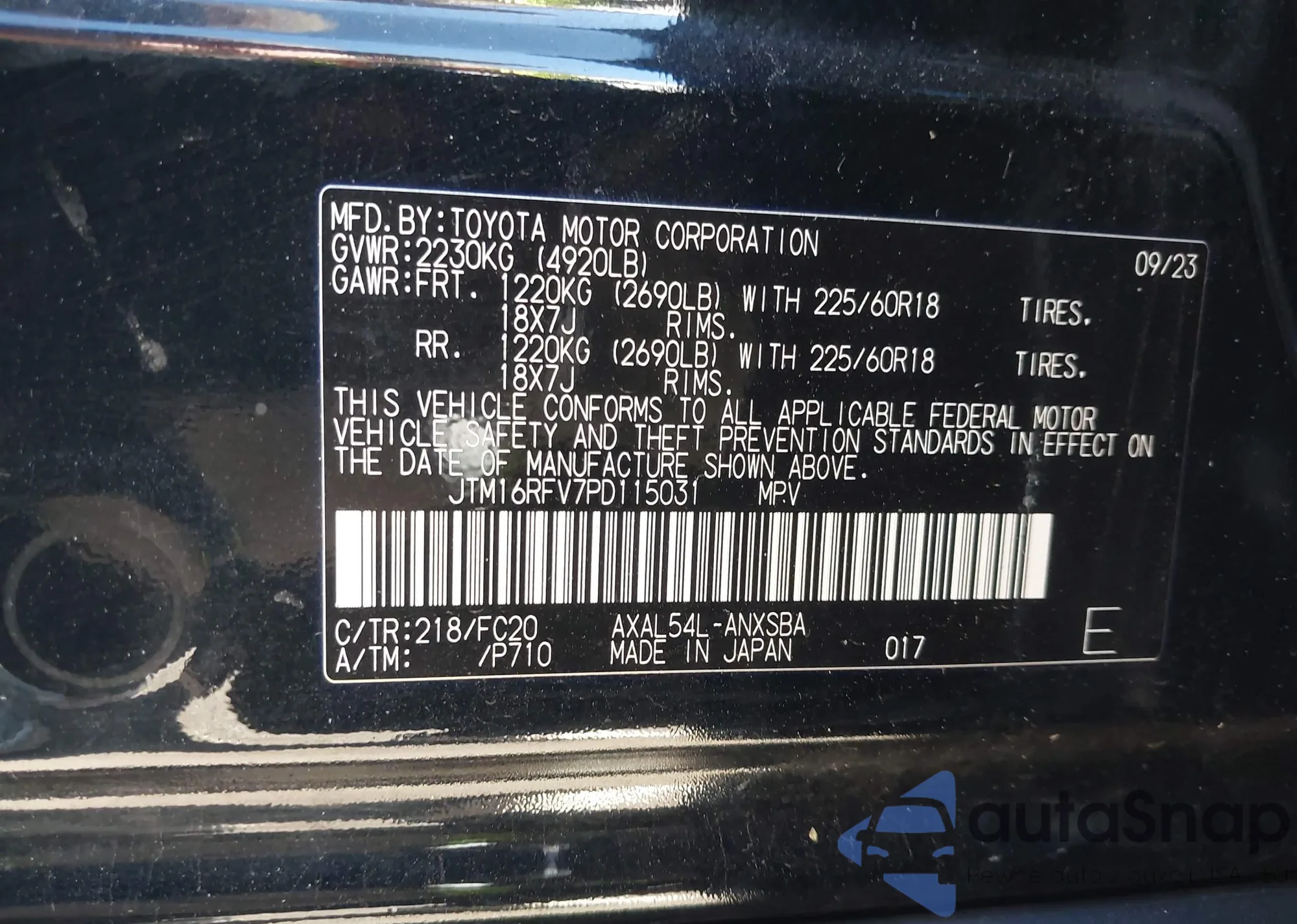 LOT: 43391384 VIN: JTM16RFV7PD115031