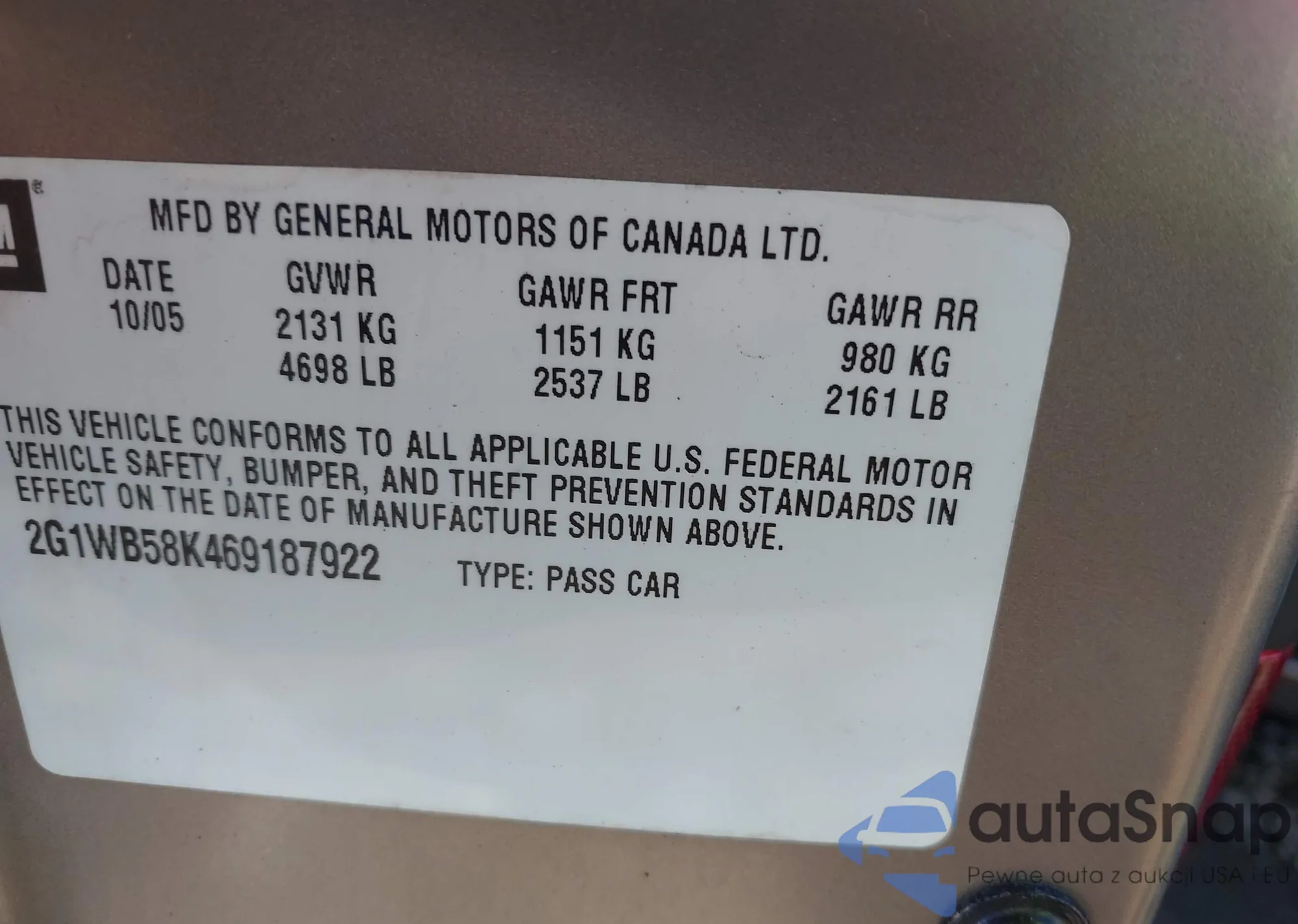 • VIN 2G1WB58K469187922
