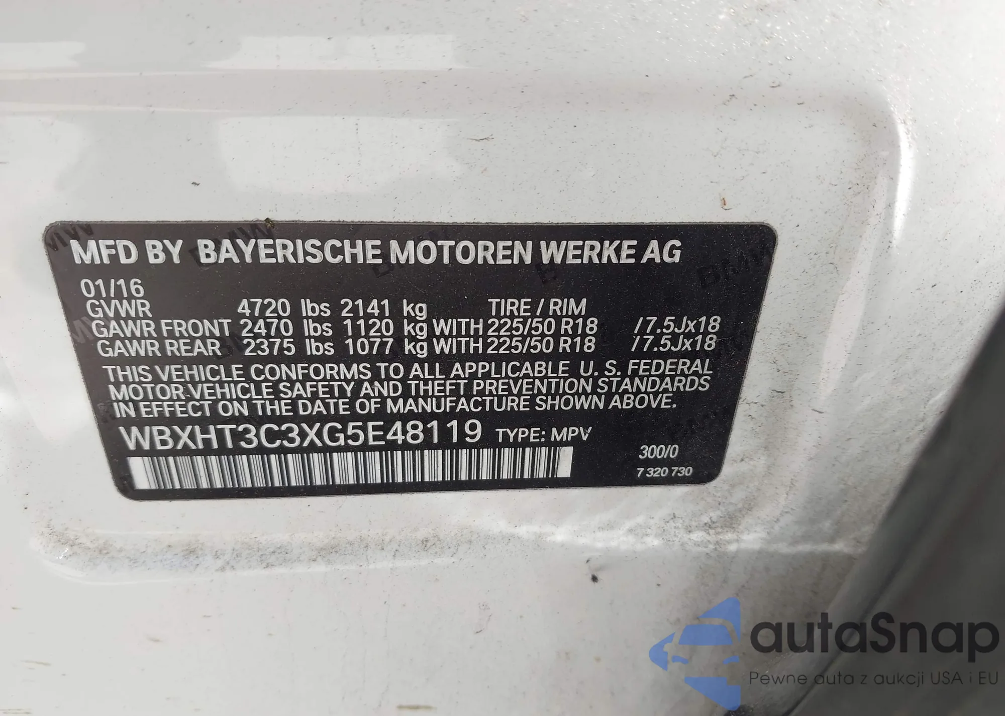 LOT: 43532604 VIN: WBXHT3C3XG5E48119