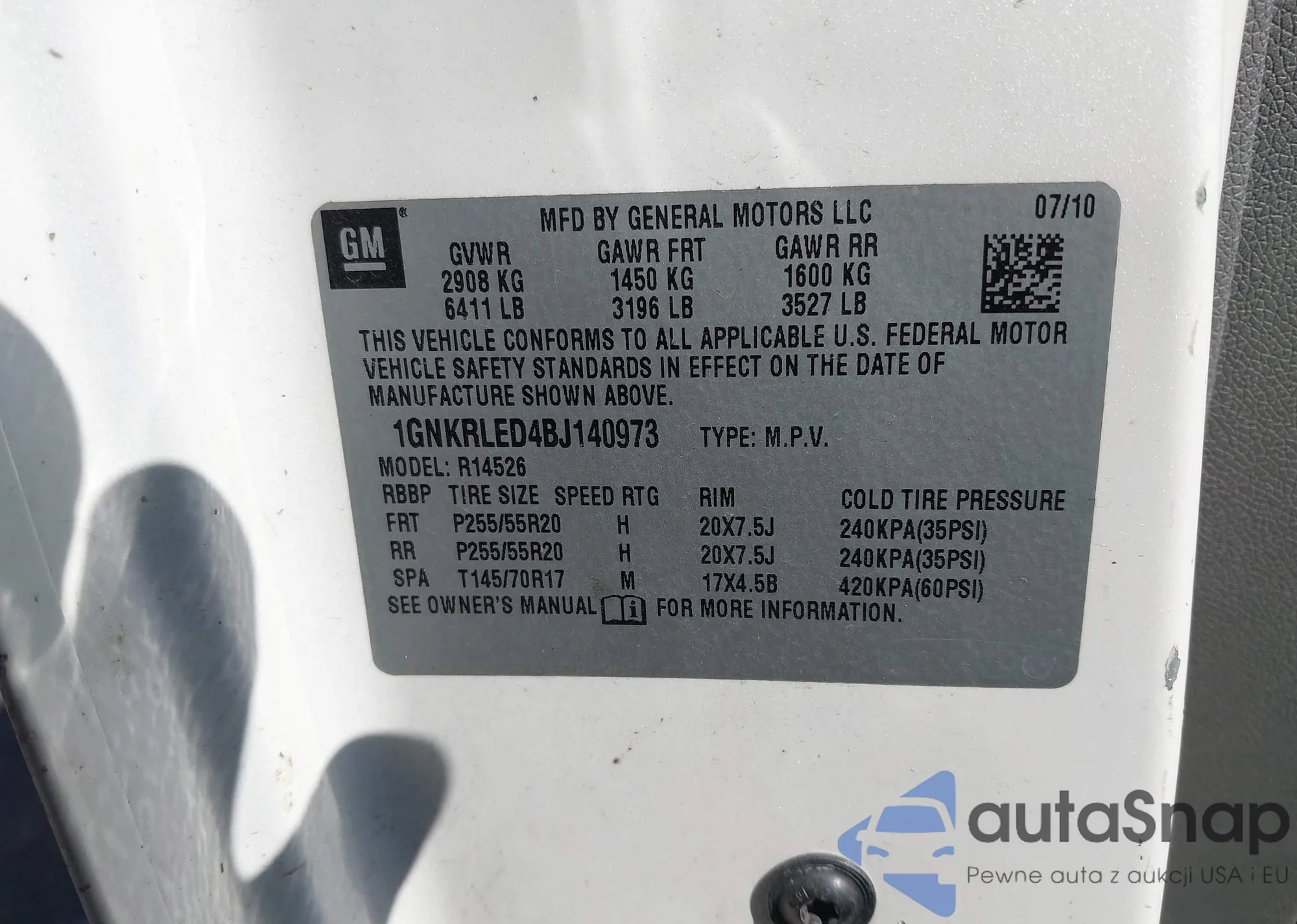 LOT: 43589763 VIN: 1GNFK13057R401322