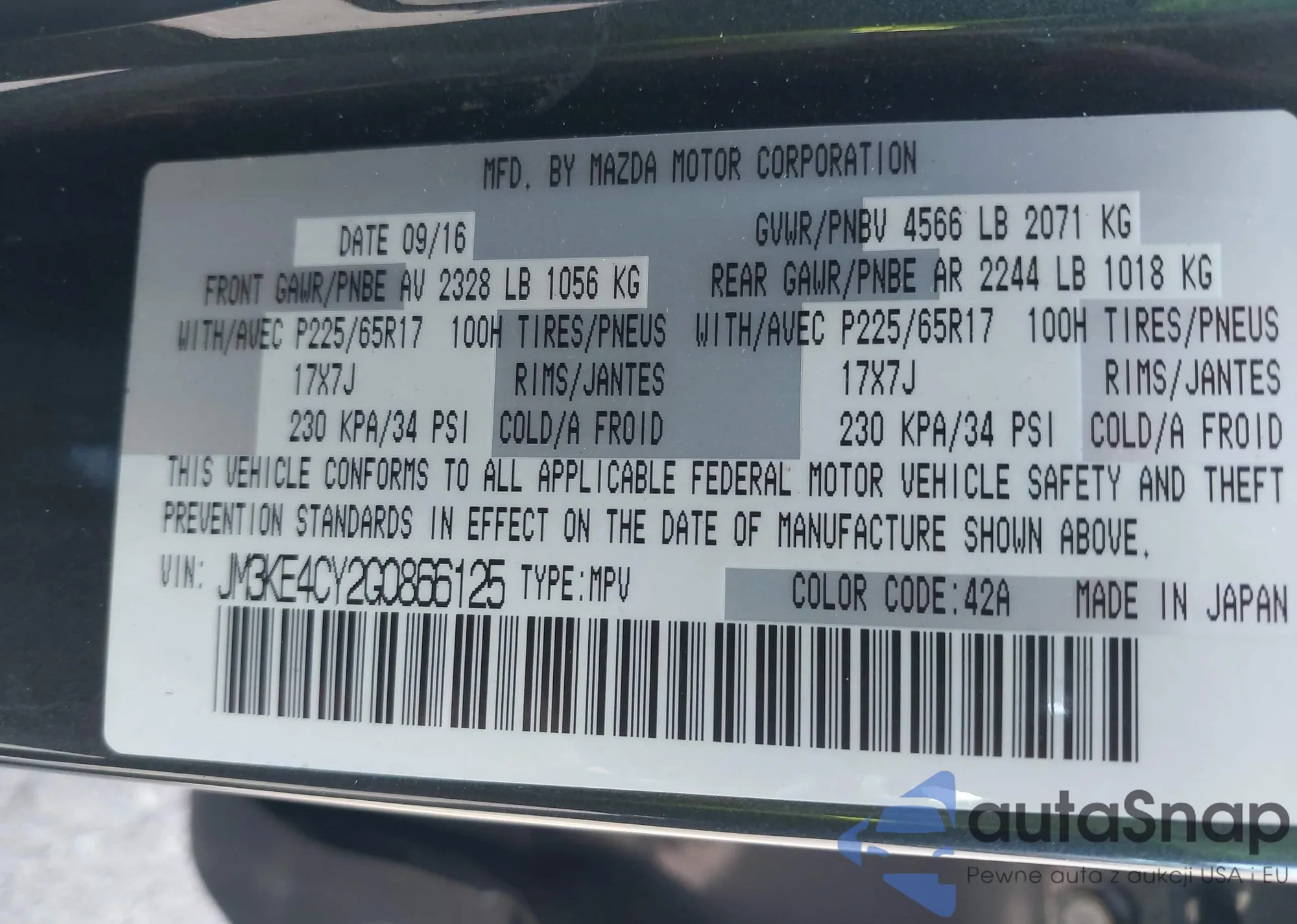 • VIN 3TMAZ5CN7JM066896