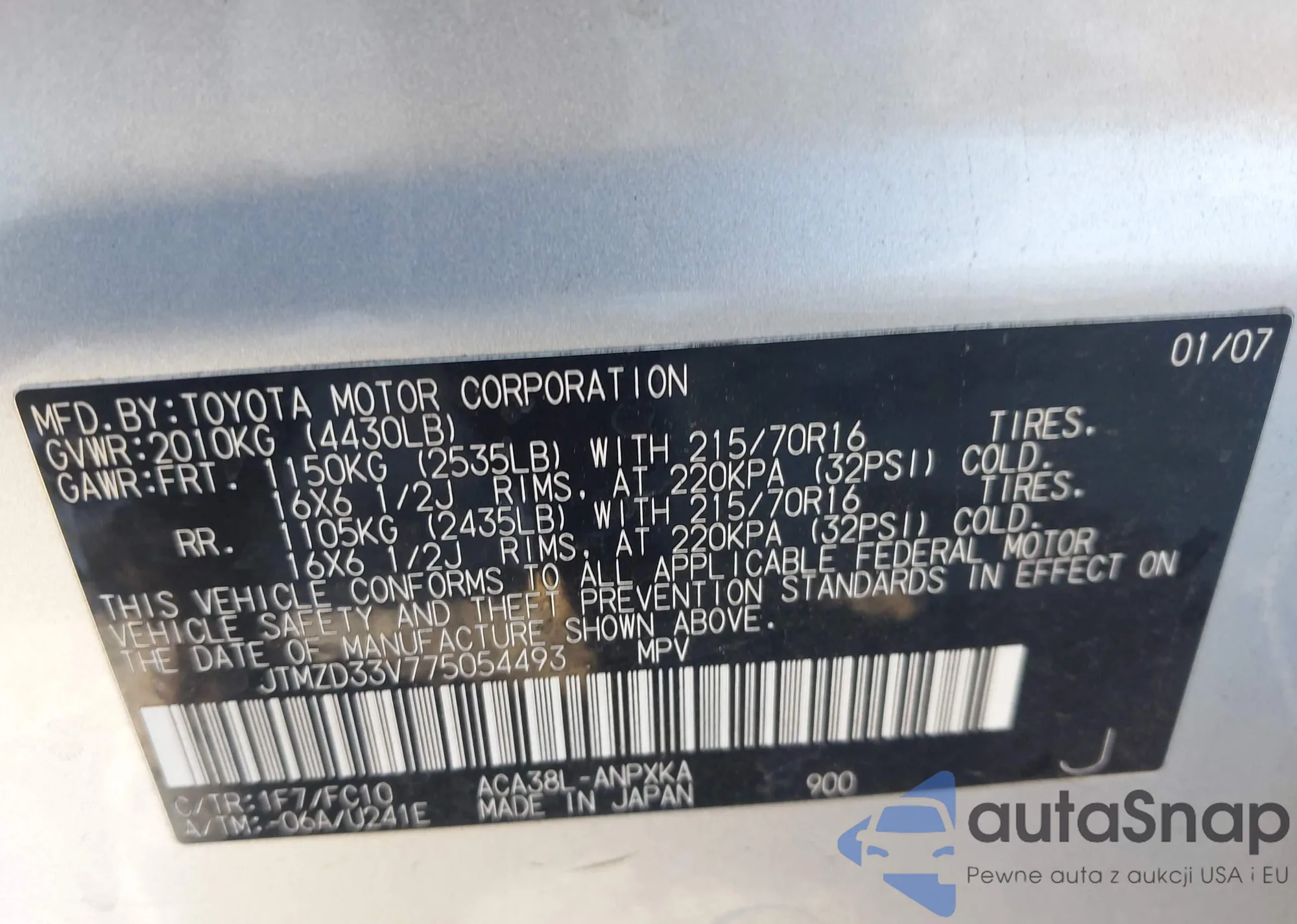 • VIN JTMZD33V775054493