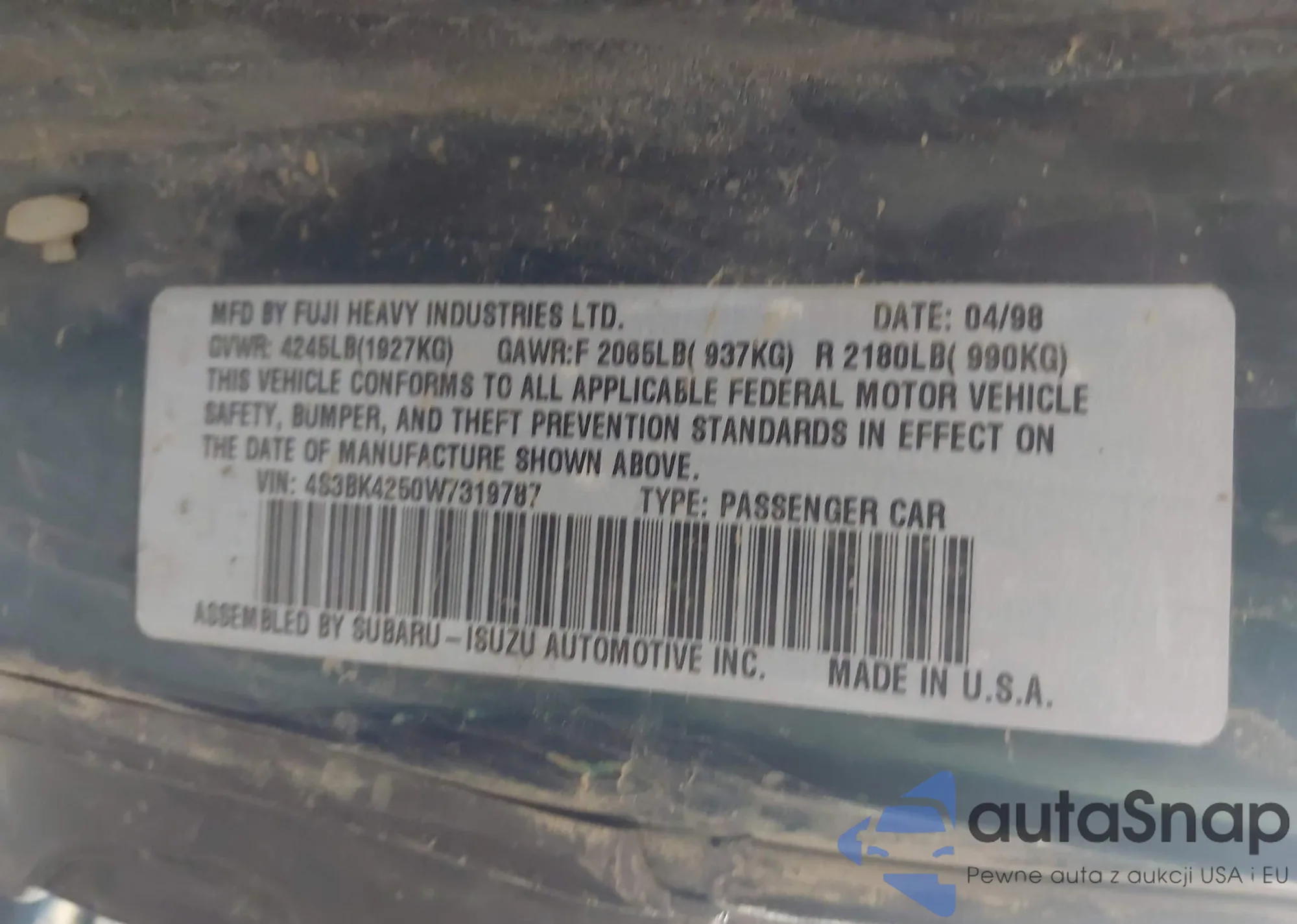 • VIN 4S3BK4250W7319787