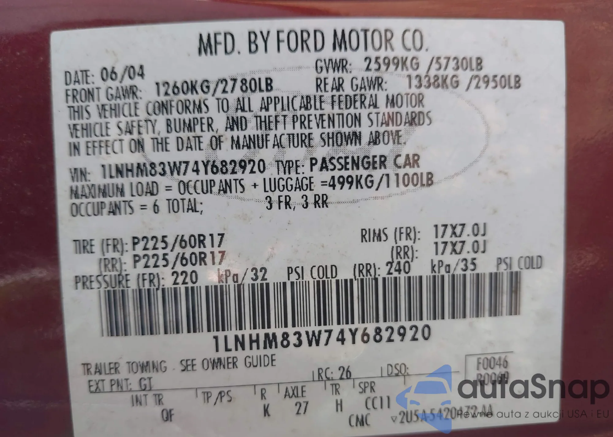 • VIN 1LNHM83W74Y682920
