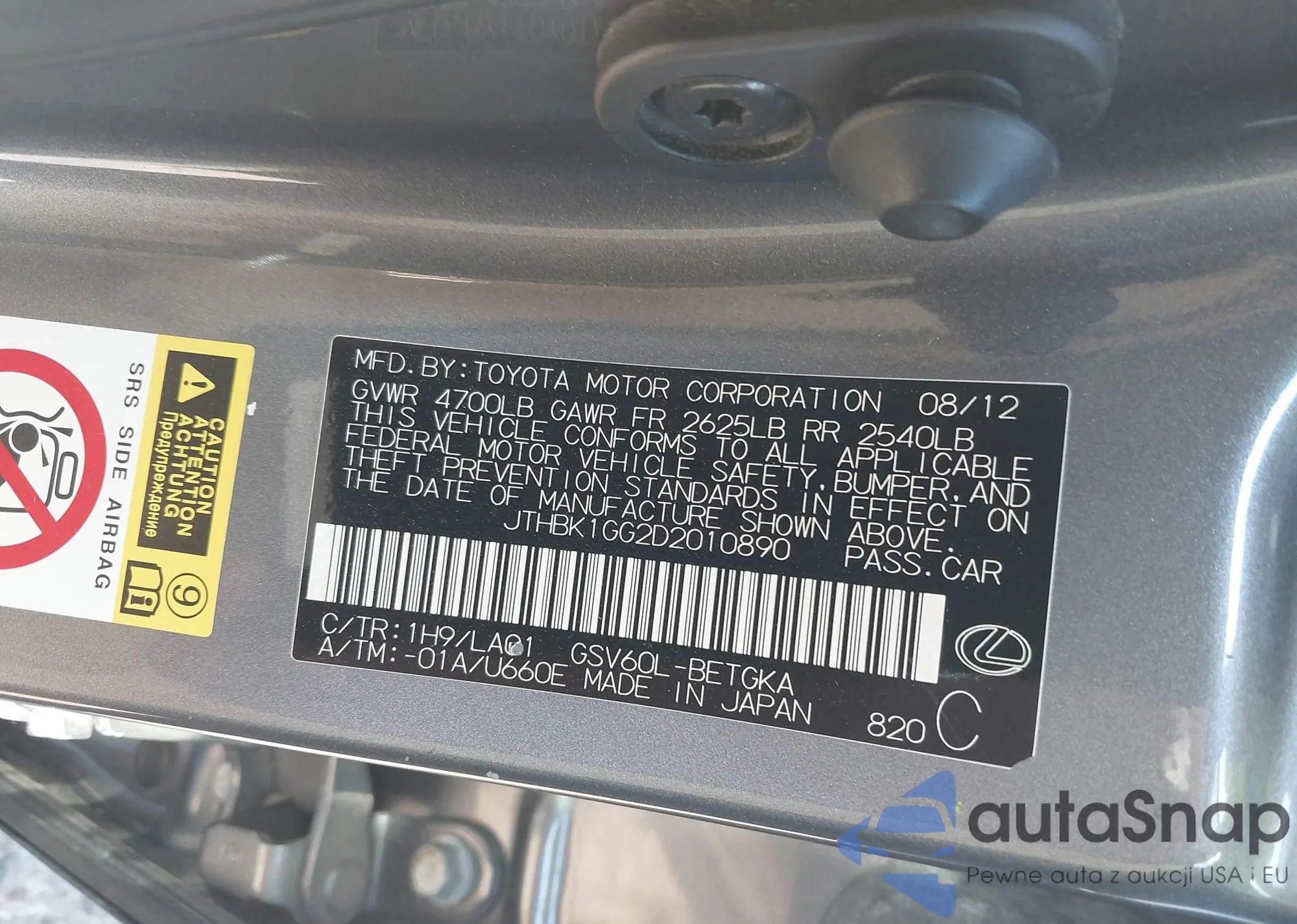 LOT: 43412518 VIN: JTHBK1GG2D2010890