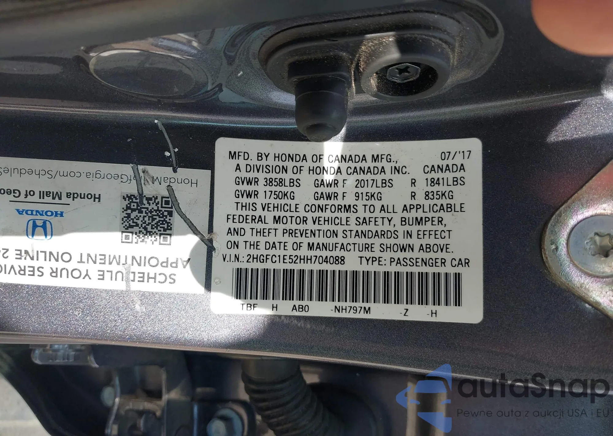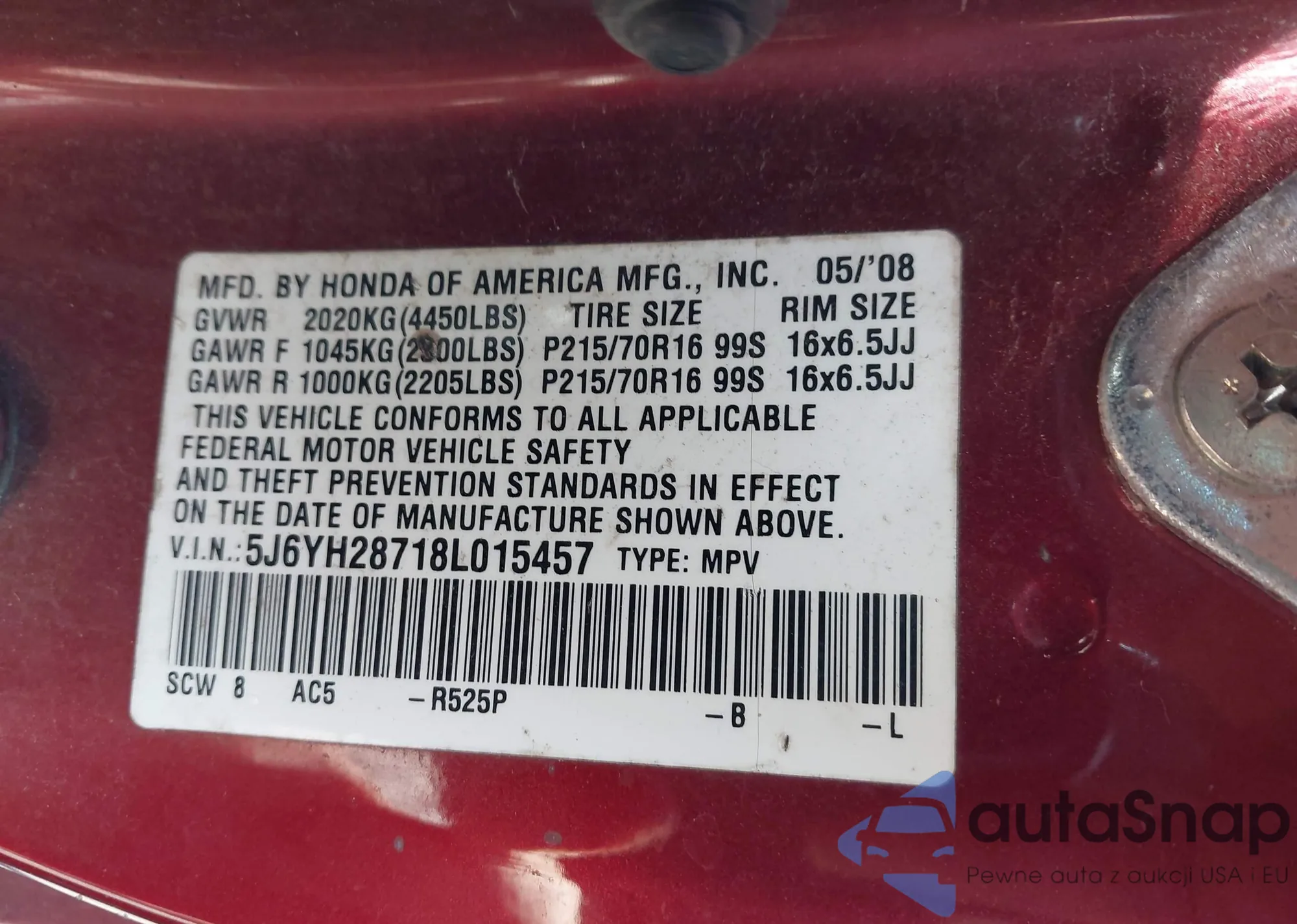 LOT: 43466878 VIN: 2HGFA16868H512848