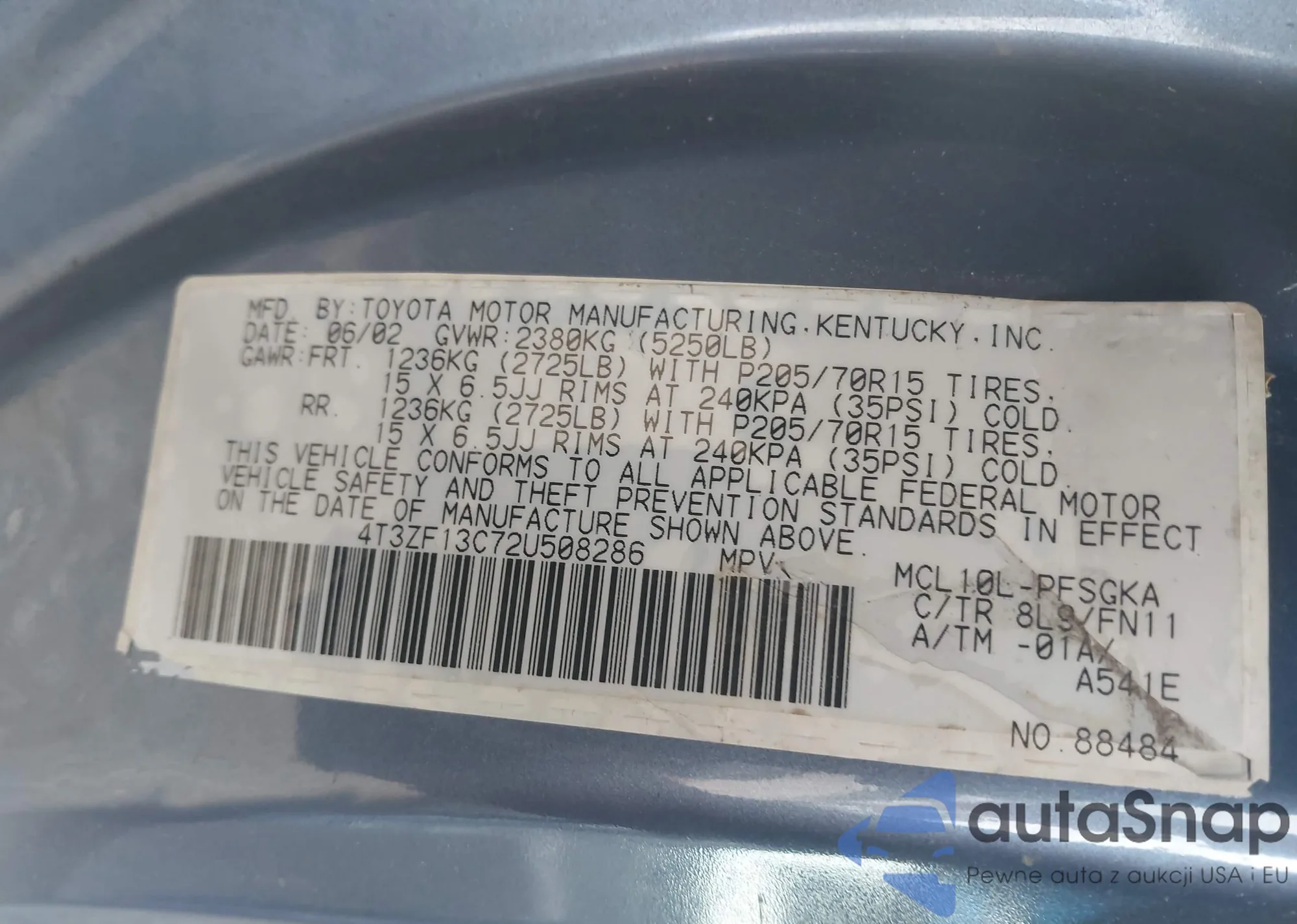 • VIN 4T3ZF13C72U508286