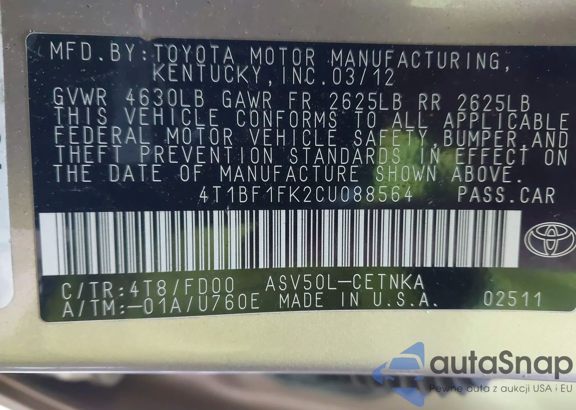 LOT: 43516698 VIN: 4T3ZF13C72U508286