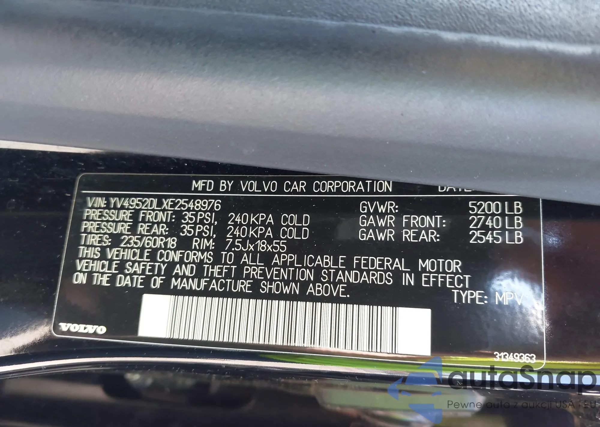 LOT: 43467533 VIN: YV4952DLXE2548976