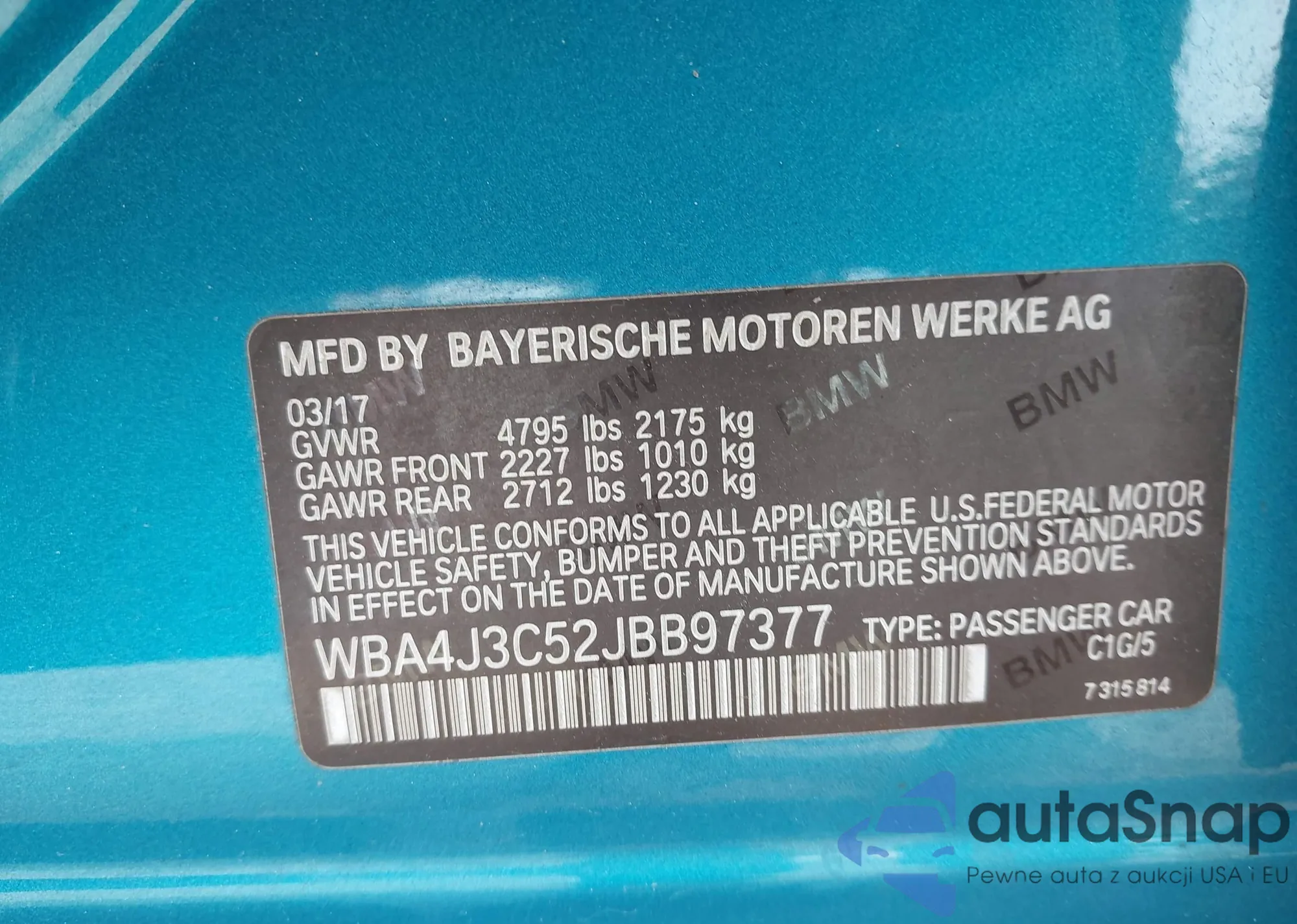 • VIN WBA4J3C52JBB97377