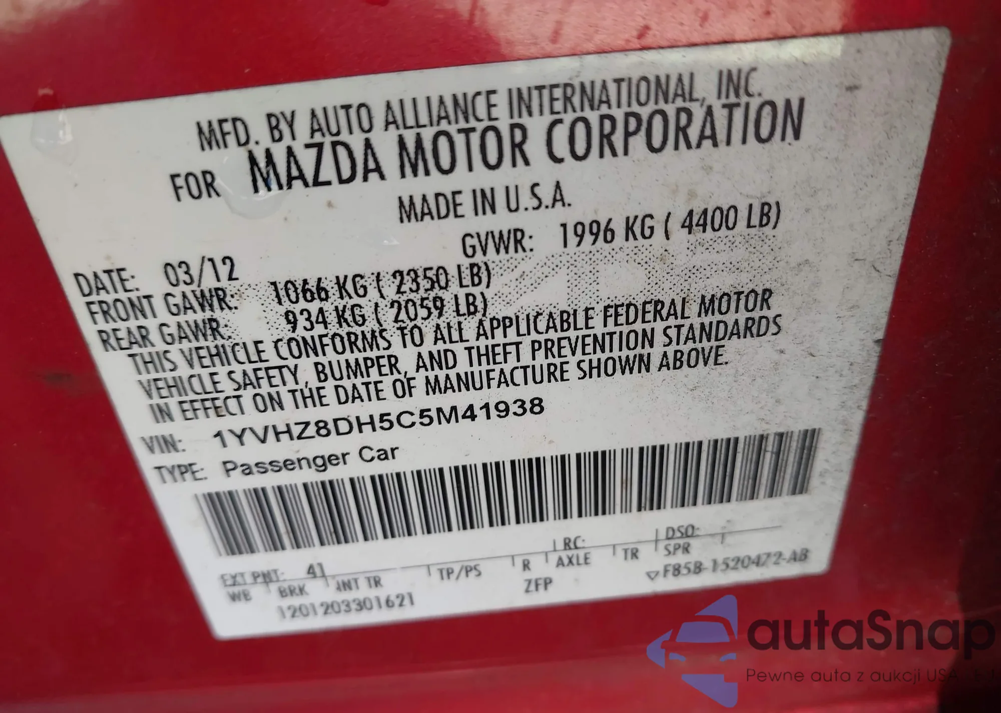 LOT: 42860591 VIN: WBA4J3C52JBB97377