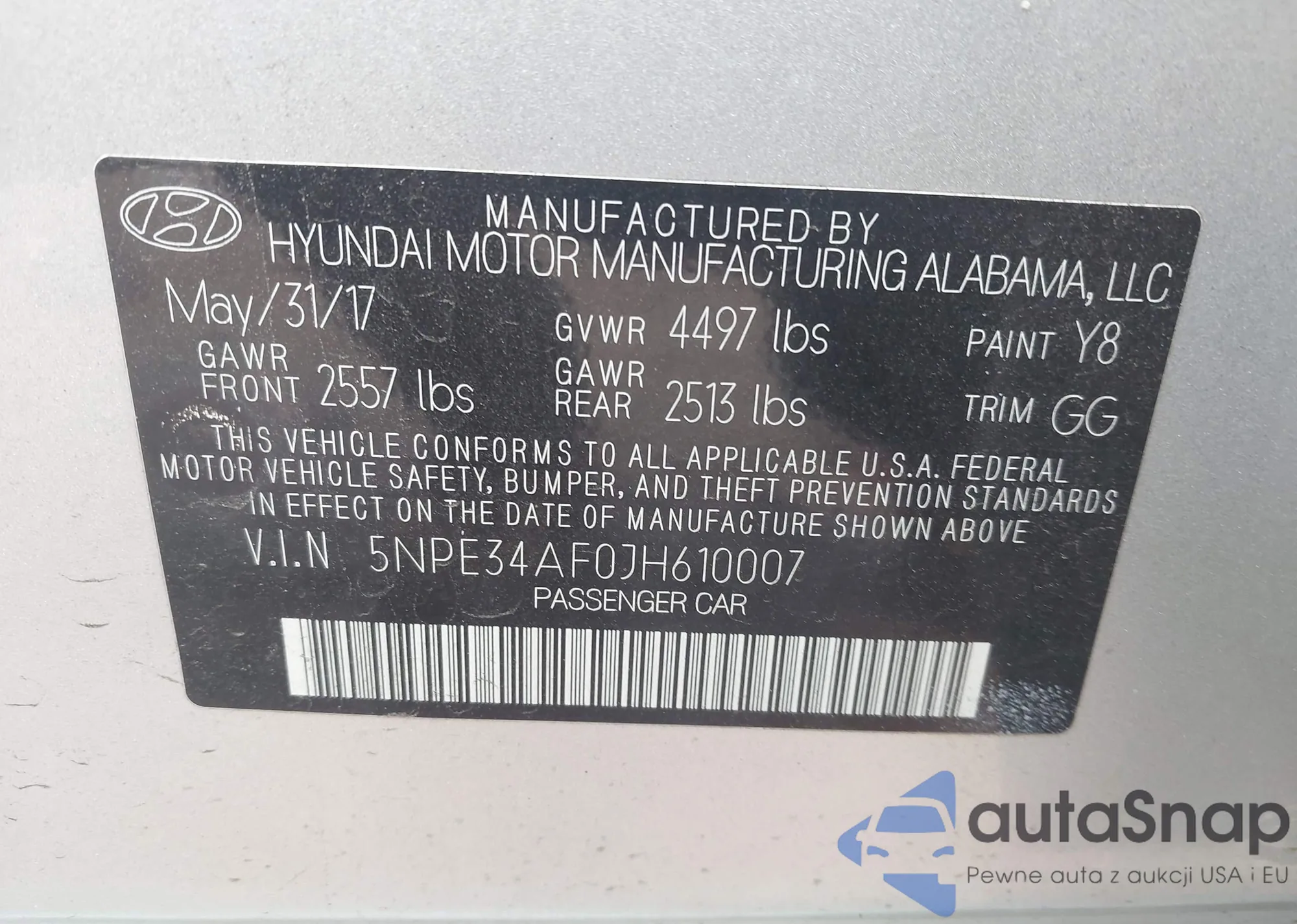 • VIN 5NPE34AF0JH610007