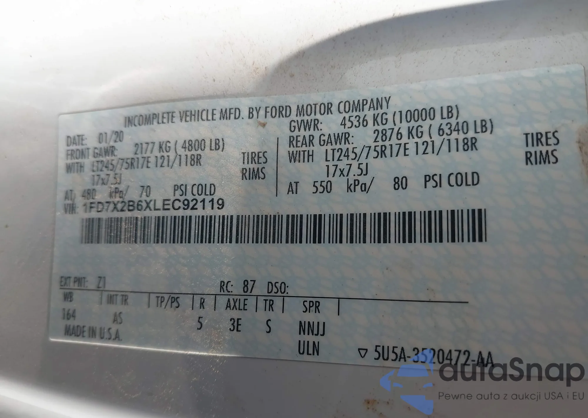 • VIN 1FD7X2B6XLEC92119